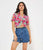 ZUIKI FASHIONCamicia modello crop con fantasia floreale, mezze maniche con risvolti e chiusura con bottoni.La modella indossa la taglia IT SL' altezza della modella è 173 cm