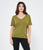 ZUIKI BASICMaglia in viscosa a mezze maniche con scollo s V profondo.L' altezza della modella è 173 cmComposizione: 65%viscosa 35%nylon