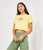 ZUIKI FASHIONT- shirt in cotone modello crop con stampa grafica frontale.La modella indossa la taglia IT SL' altezza della modella è 180 cm
