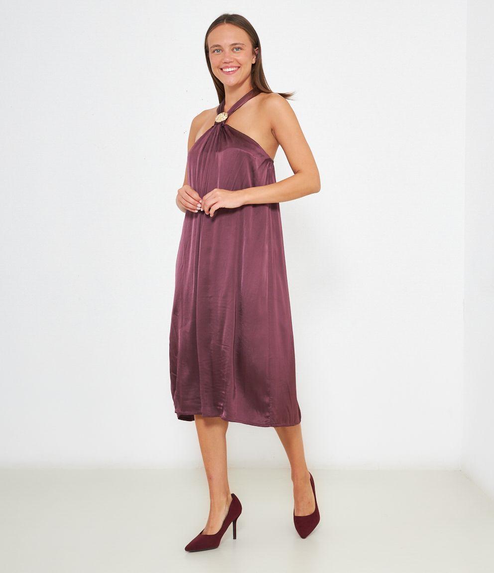 Abito modello midi in viscosa con scollo all' americana e dettaglio gioiello.