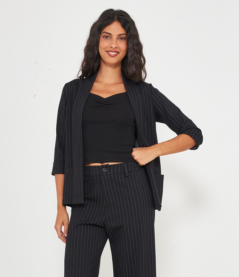 Blazer senza chiusura, gessato con maniche a tre quarti.