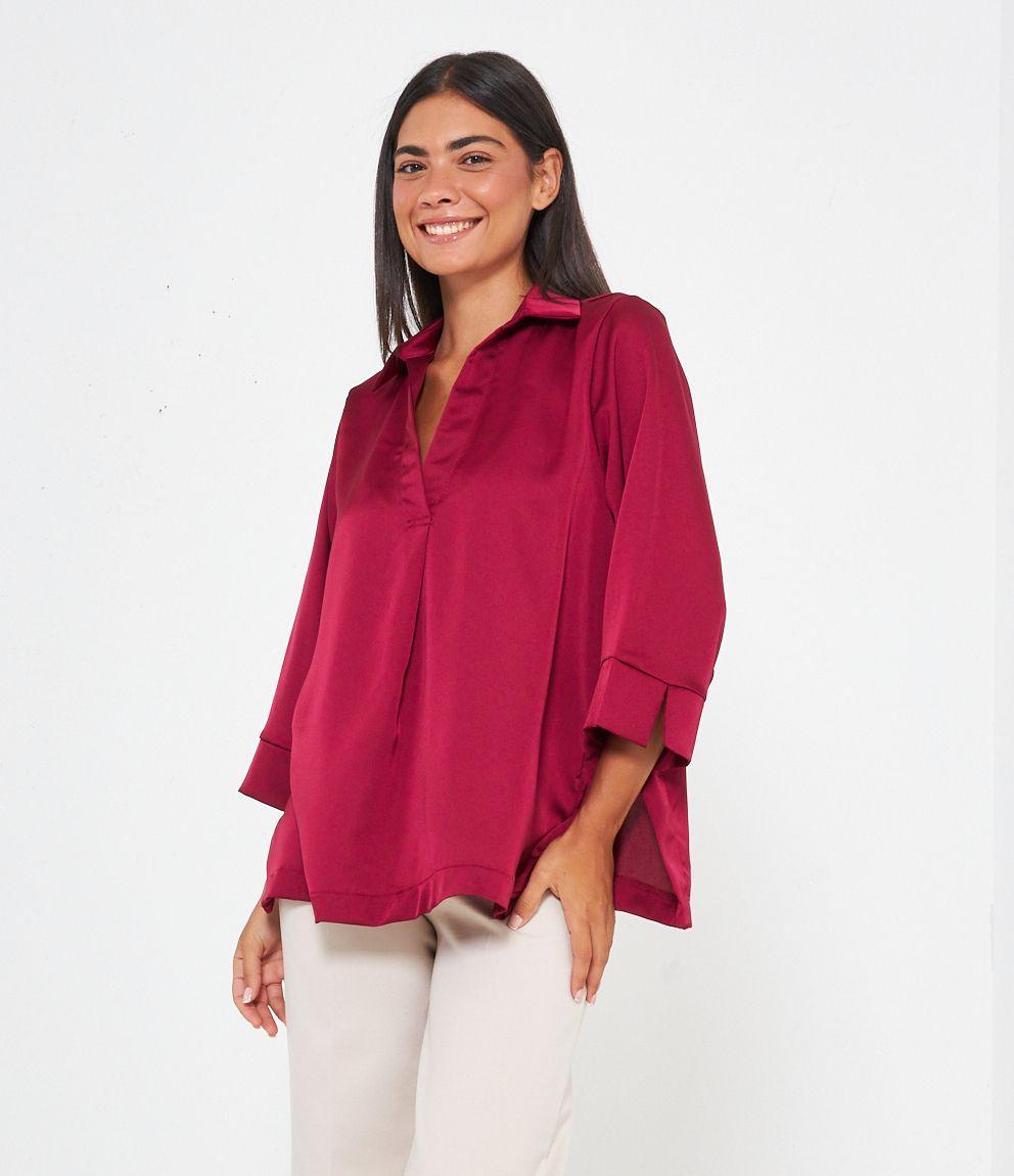 Casacca in raso con scollo a v e colletto, spacchi laterali e maniche a tre quarti.
