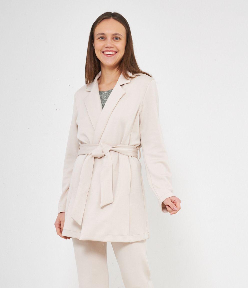 Spolverino modello midi con collo revers e cintura in vita.