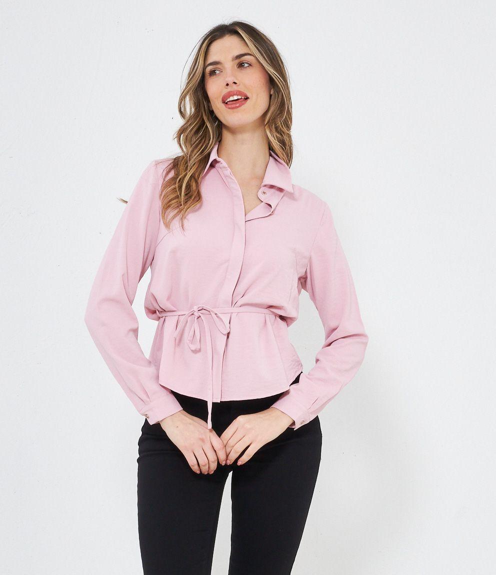 Camicia regular fit con bottoni coperti e cintura in vita.