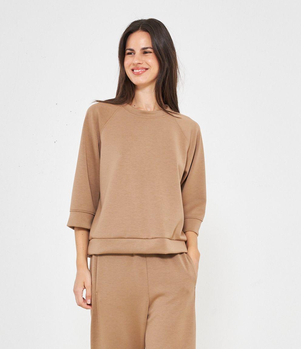 Felpa modello comfy con scollo tondo e maniche a tre quarti.