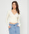 Maglia con scollo a V profondo rifinito con pizzo decorativo lungo i bordi. Design wrap con sovrapposizione incrociata sul davanti che crea drappeggi morbidi. Maniche lunghe aderenti e lunghezza corta che lascia scoperta la vita.La modella indossa la taglia IT...