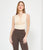 Canotta in tessuto a coste con scollo a cuore e chiusura frontale con piccoli bottoni decorativi. Presenta spalline sottili e vestibilità aderente che segue le forme del corpo. Orlo dritto a vita bassa per un look casual e femminile.La modella...