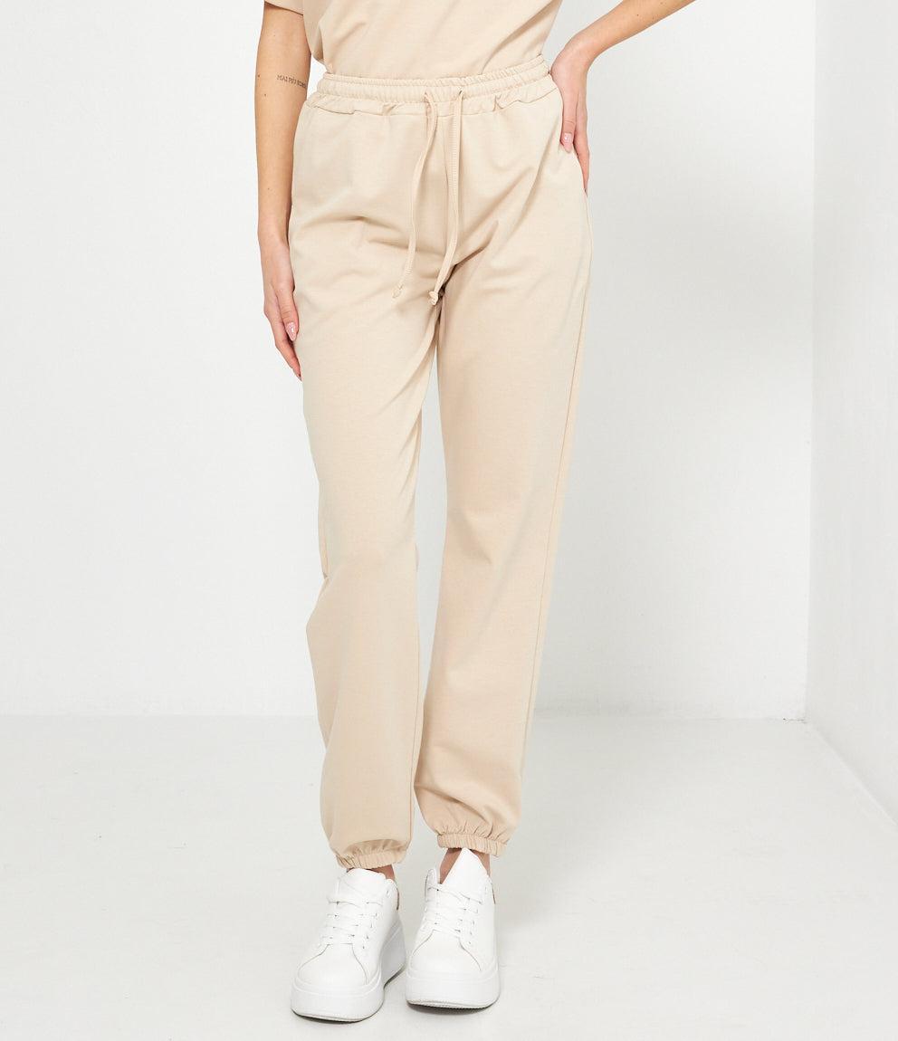 Pantaloni sportivi con vita elasticizzata e coulisse regolabile per una vestibilità comoda. Dotato di tasche laterali funzionali e orli elastici alle caviglie che creano l'effetto jogger. Taglio morbido e rilassato, perfetto per il tempo libero.