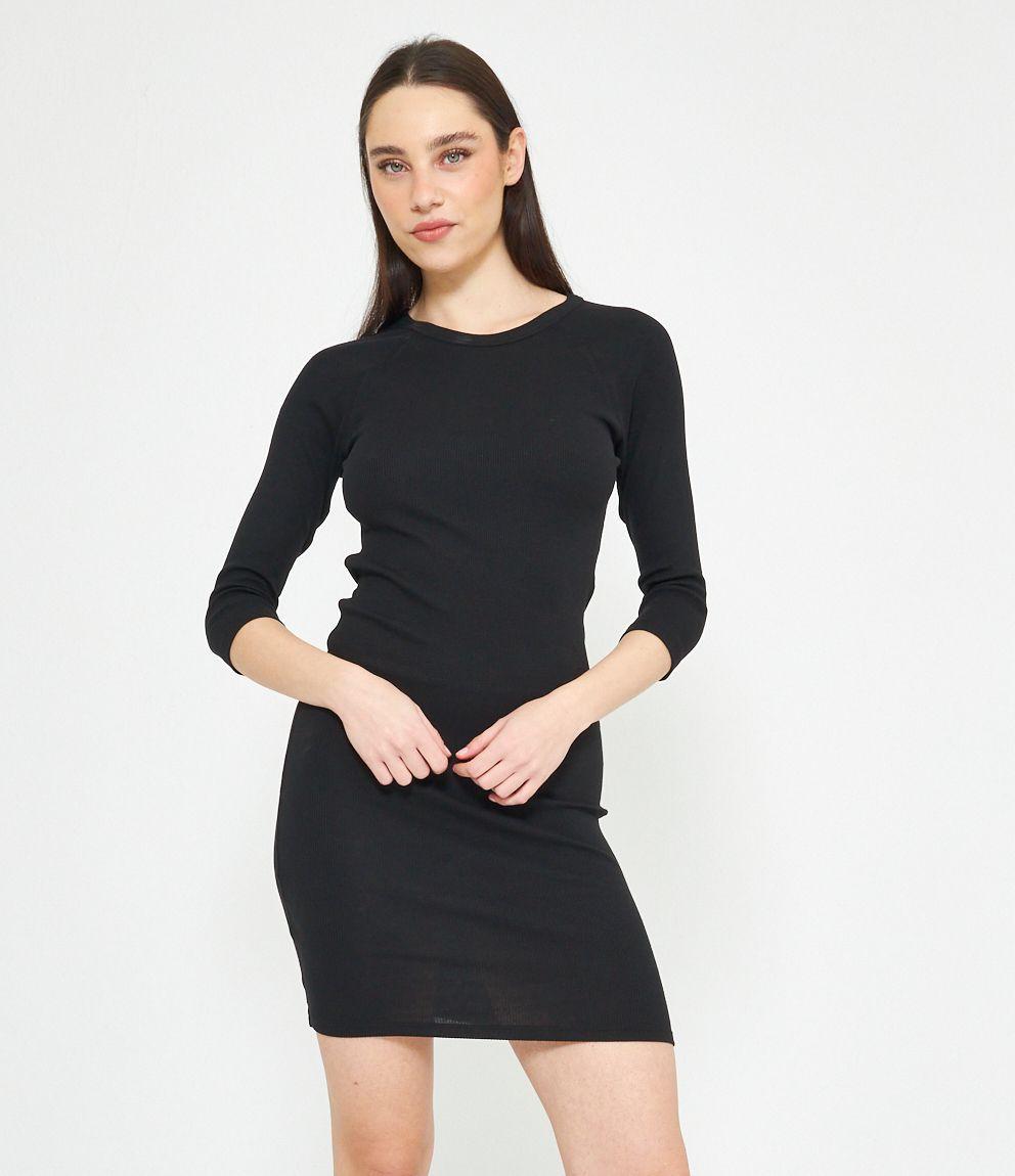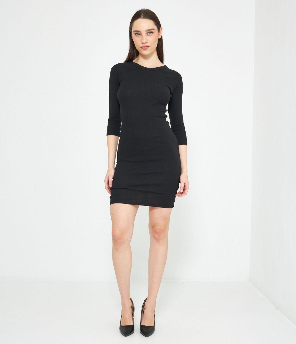 Abito in cotone con girocollo e maniche a tre quarti.