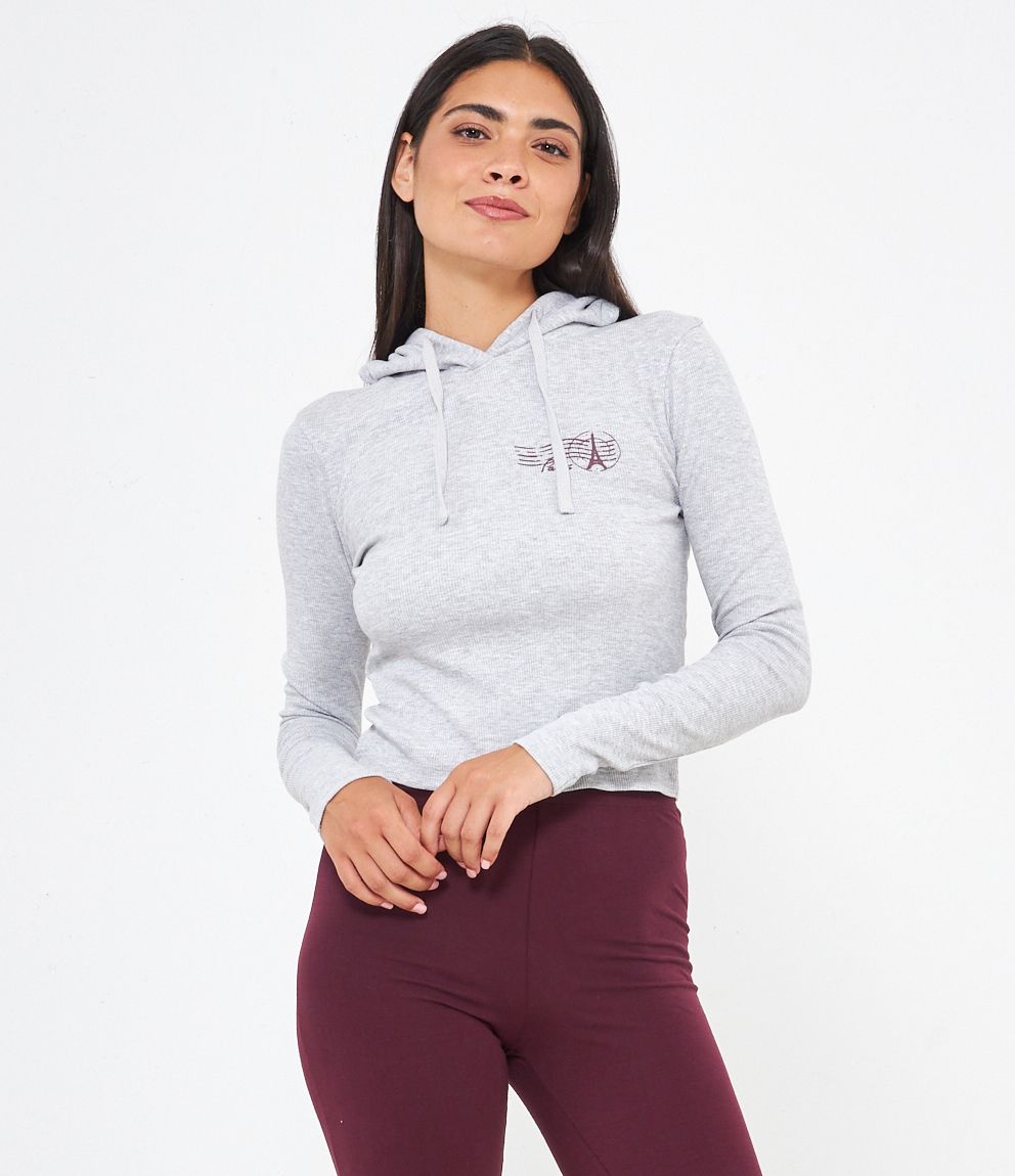 Felpa modello slim fit con cappuccio e stampa frontale.