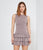 Abito senza maniche con scollo tondo, caratterizzato da vita arricciata che crea un effetto drappeggiato. La gonna è impreziosita da tre balze sovrapposte che conferiscono movimento e femminilità al capo. La vestibilità è aderente nel busto e svasata nella parte...
