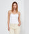 Canotta con eleganti inserti in pizzo lungo lo scollo che creano un delicato effetto decorativo. Caratterizzata da sottili spalline regolabili e vestibilità morbida e confortevole. Il design femminile e raffinato la rende perfetta per look casual o più ricercati.La modella...