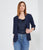 Giacca con maniche a tre quarti risvoltate, senza chiusure frontali per uno stile aperto e rilassato. Presenta due tasche applicate sui fianchi e vestibilità comoda con silhouette morbida. Le spalle sono naturali e il taglio è dritto con un design...