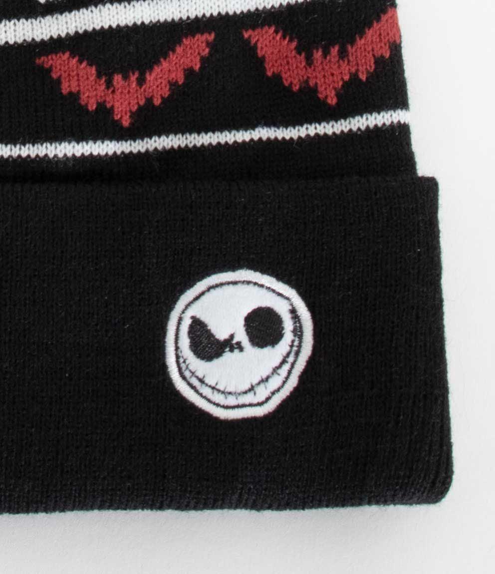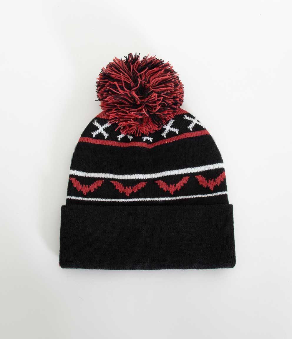 Cappello 'Nightmare' a fantasia con scritta e logo sul risvolto. Pon pon bicolor .