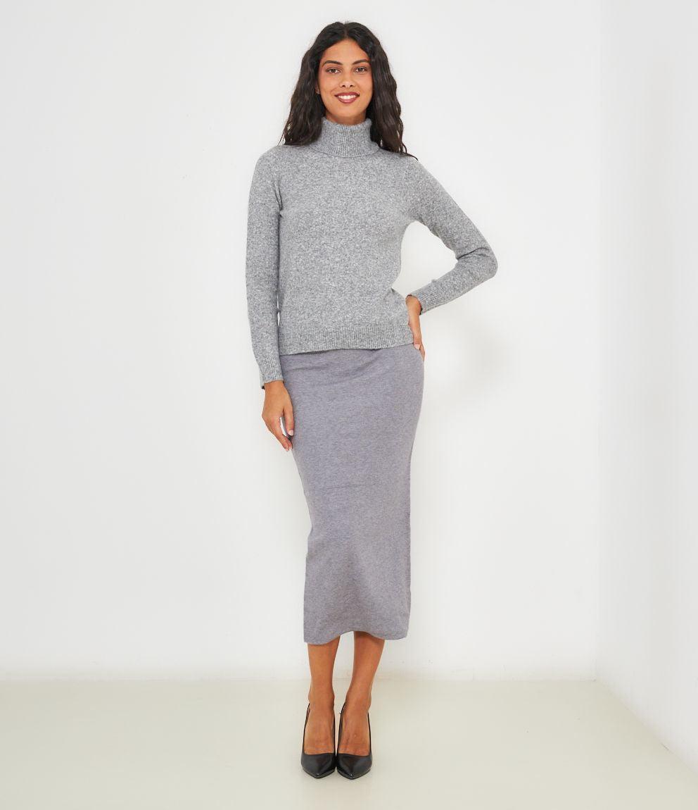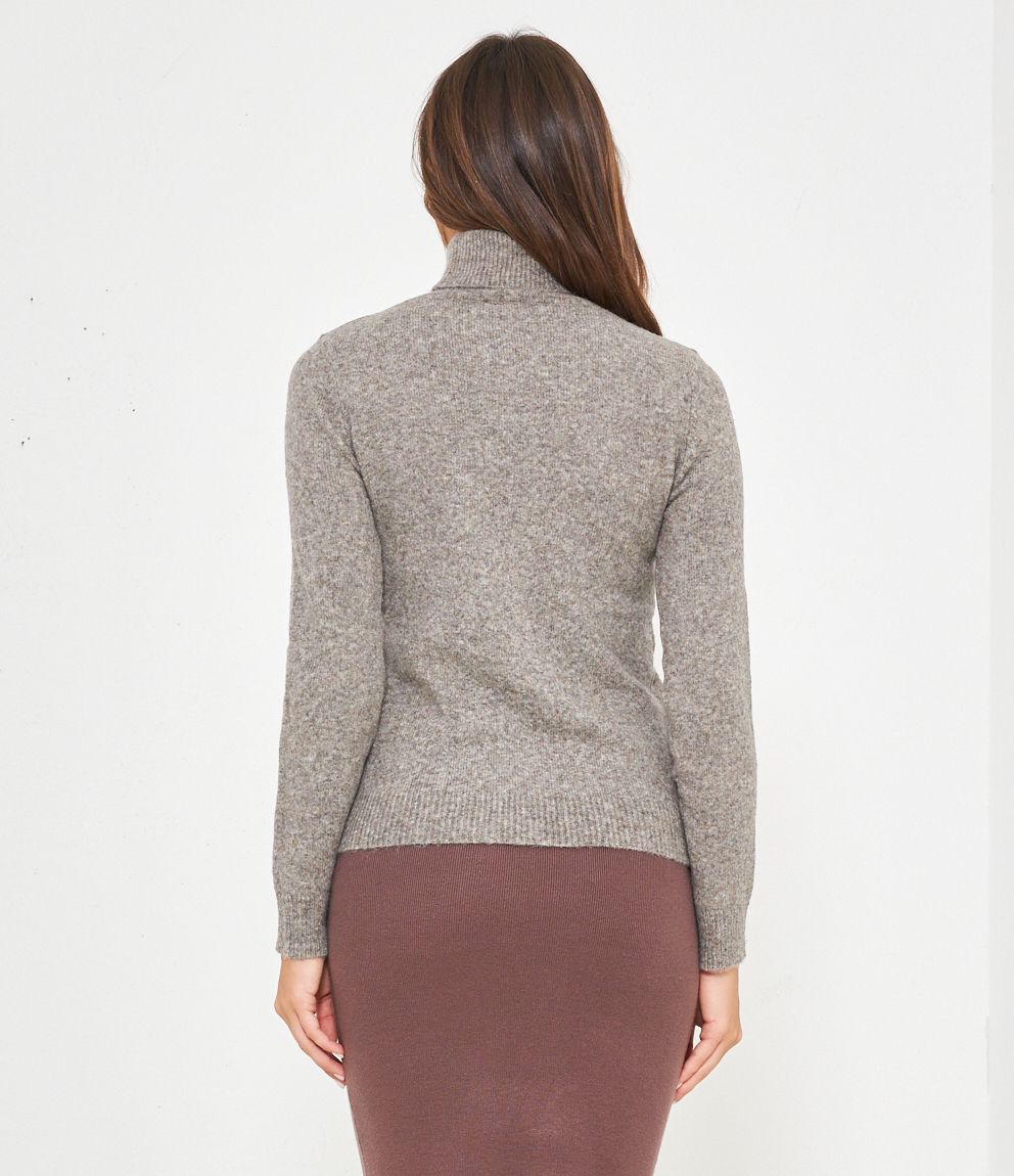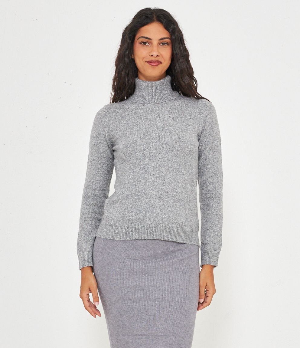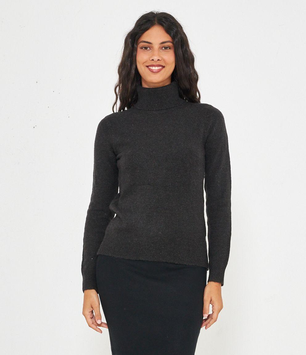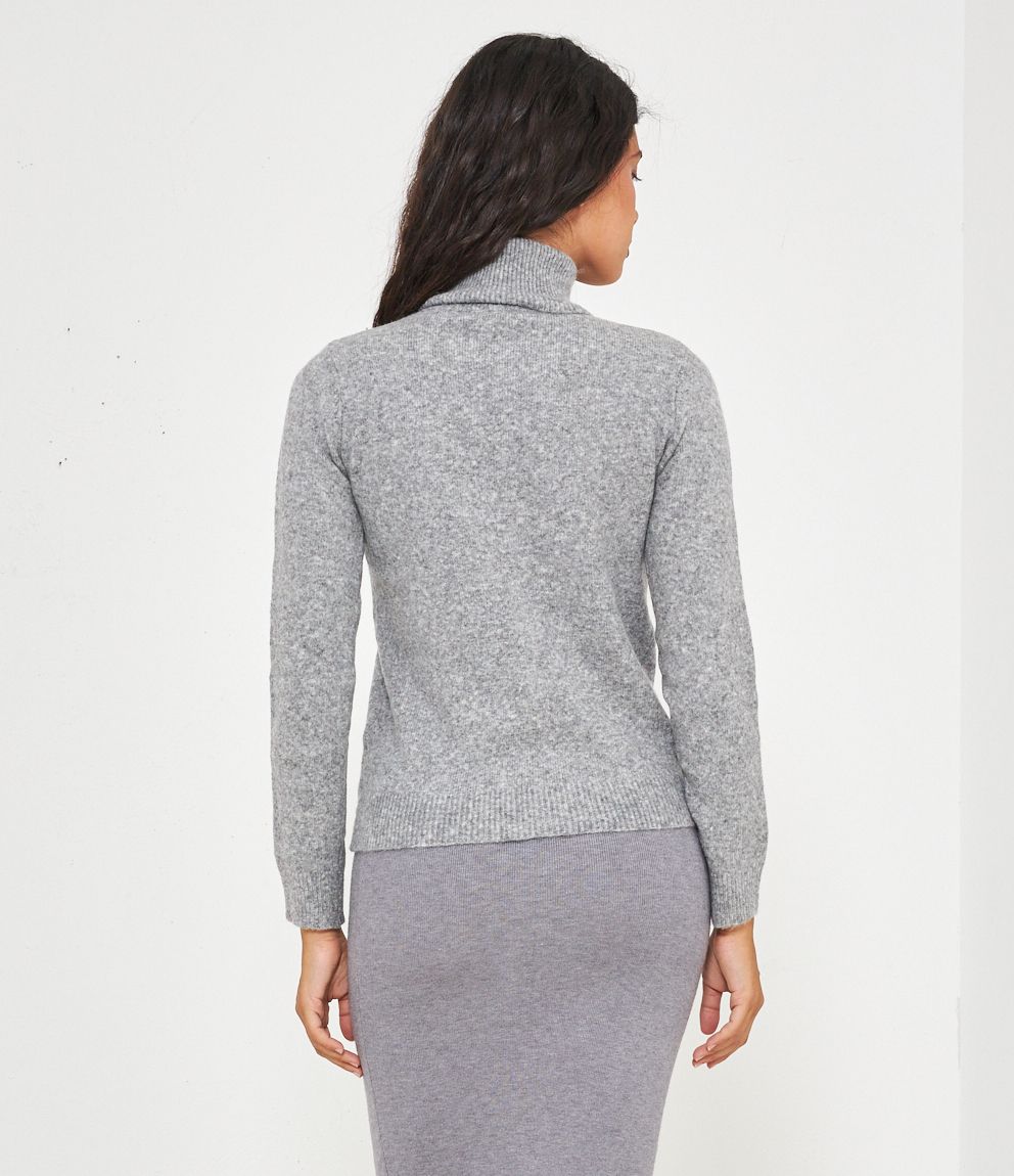 Maglia a collo alto con risvolto, bordi elastici a costine.