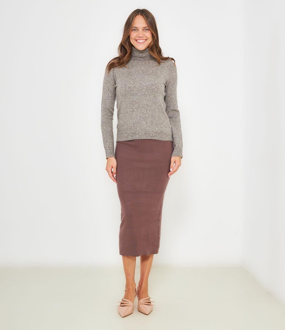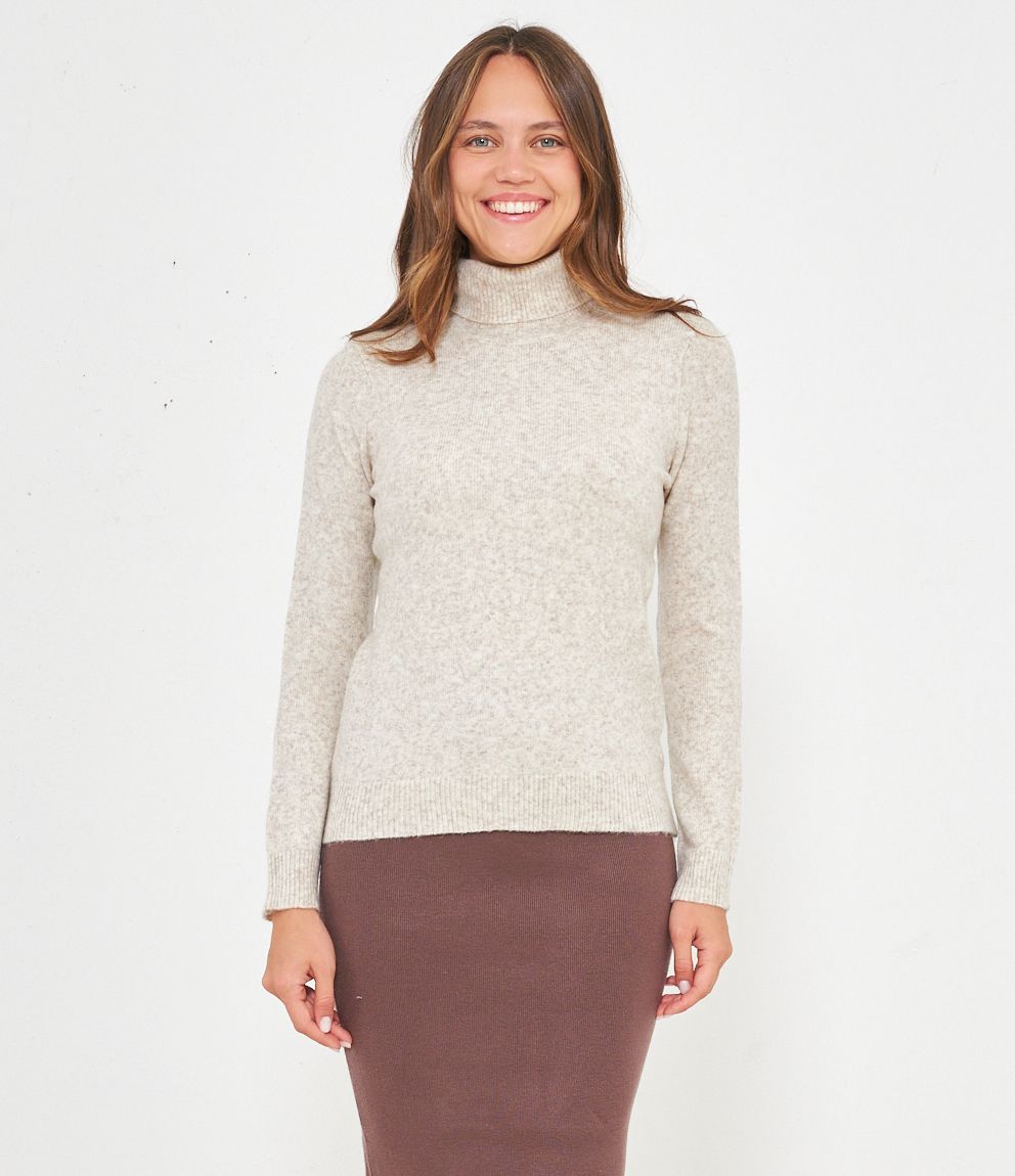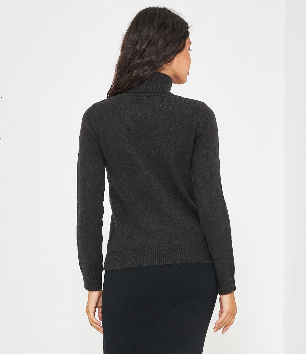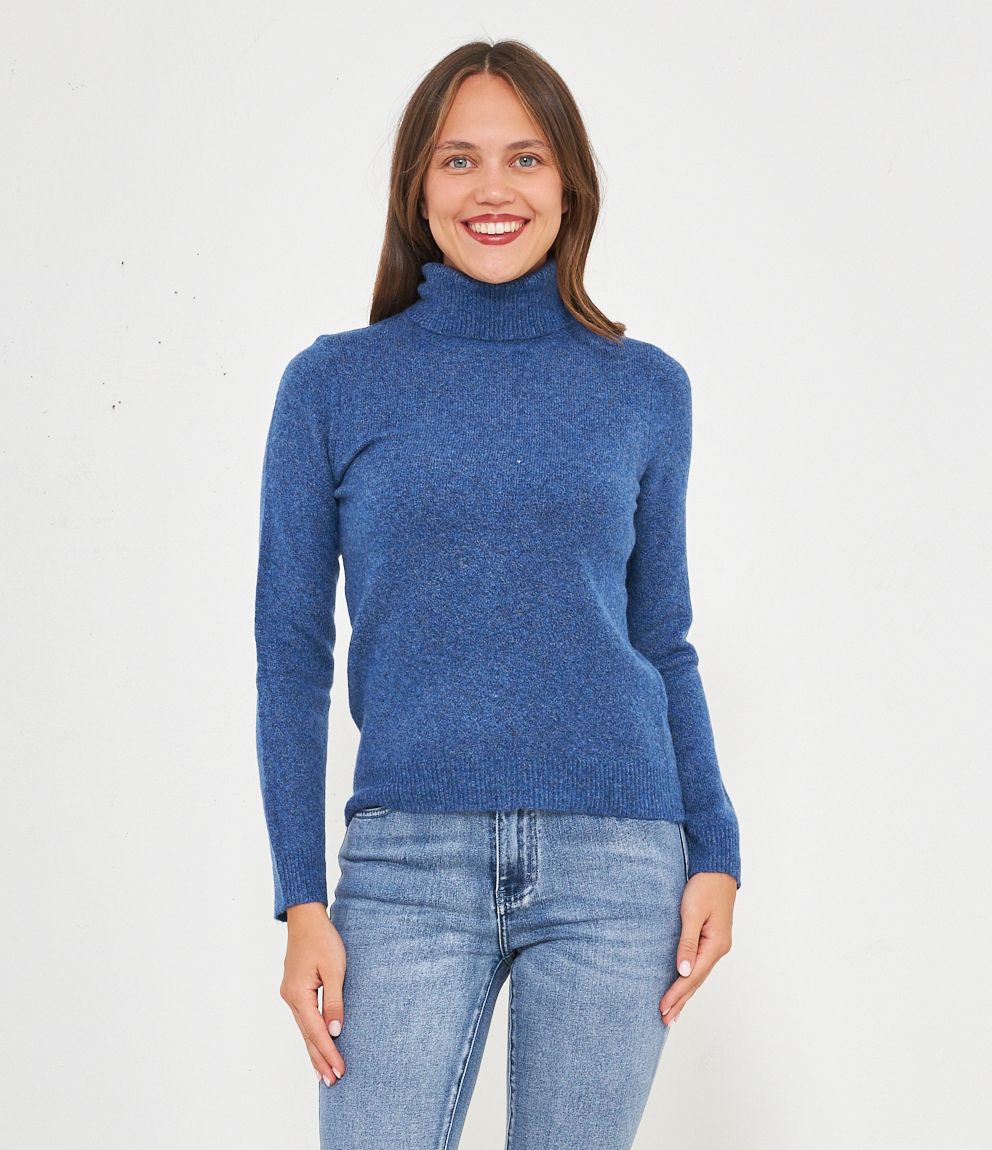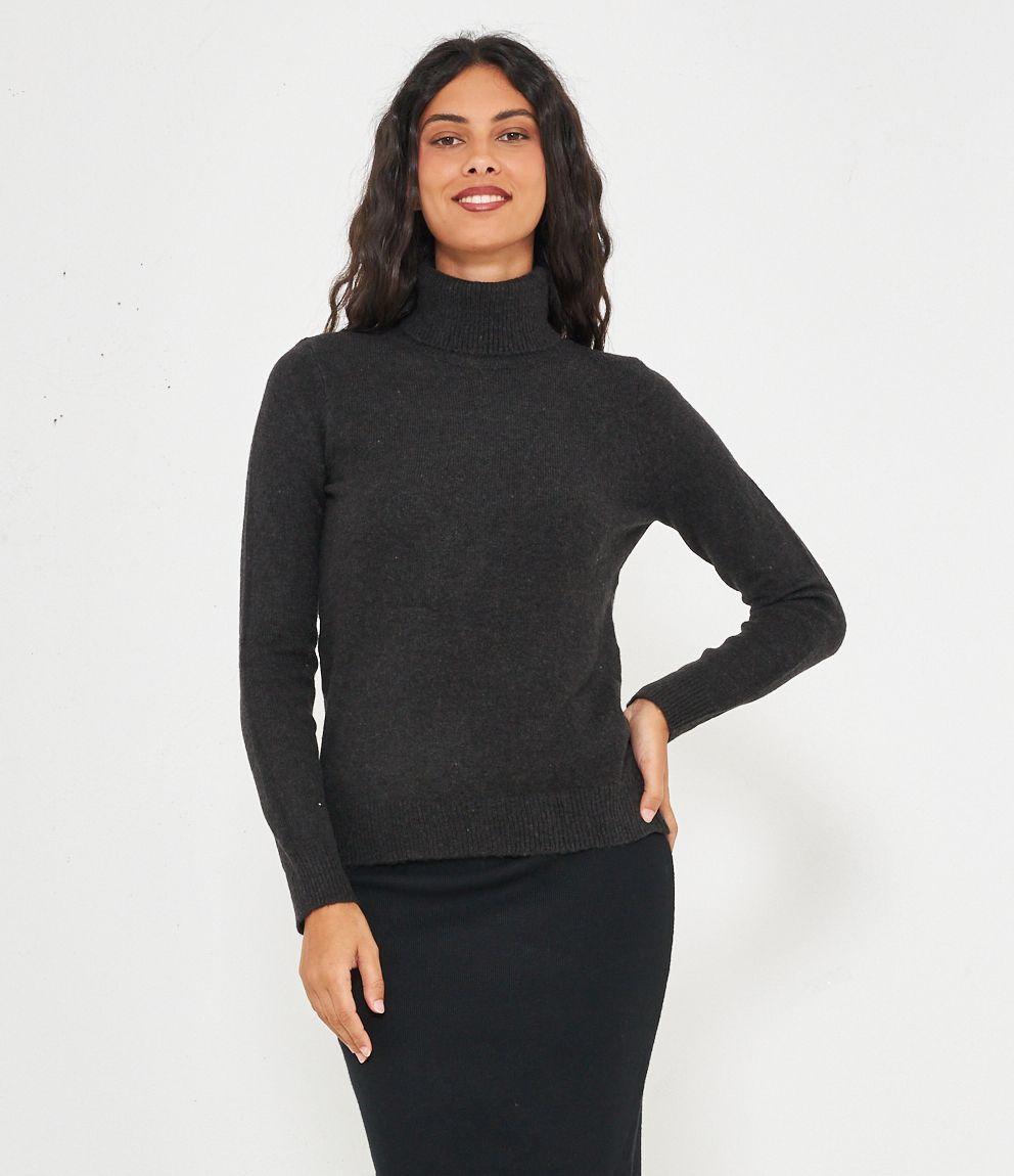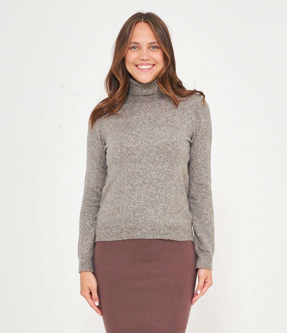 Maglia a collo alto con risvolto, bordi elastici a costine.