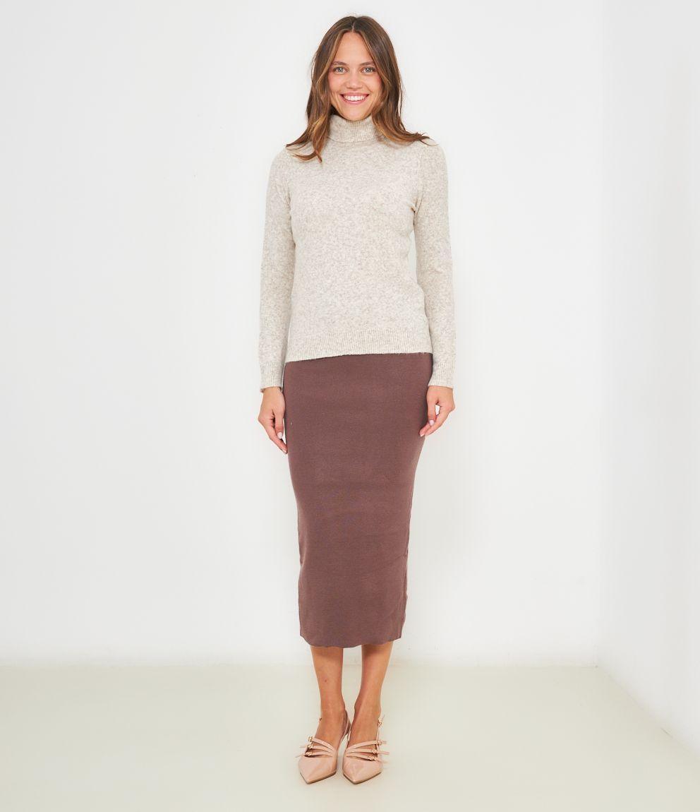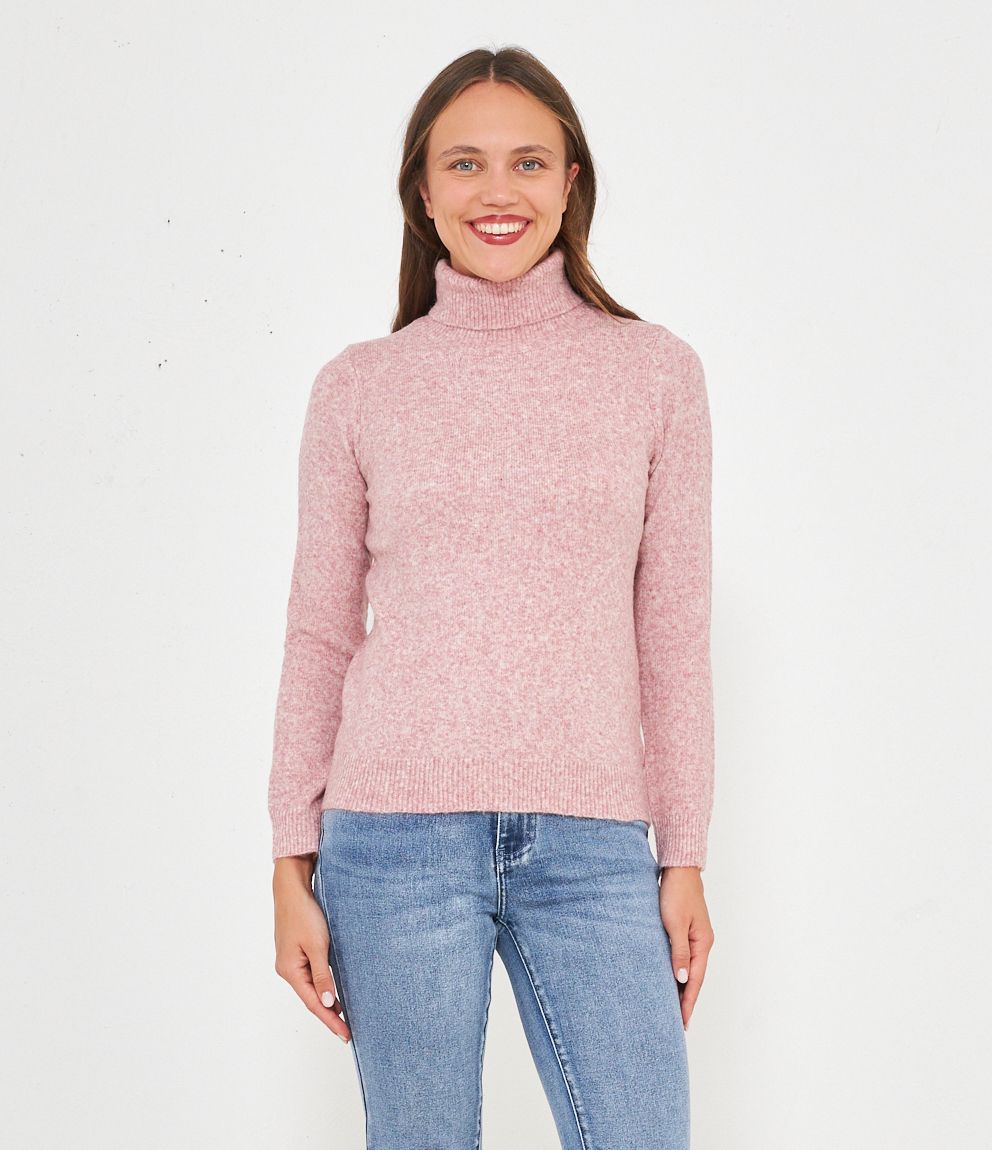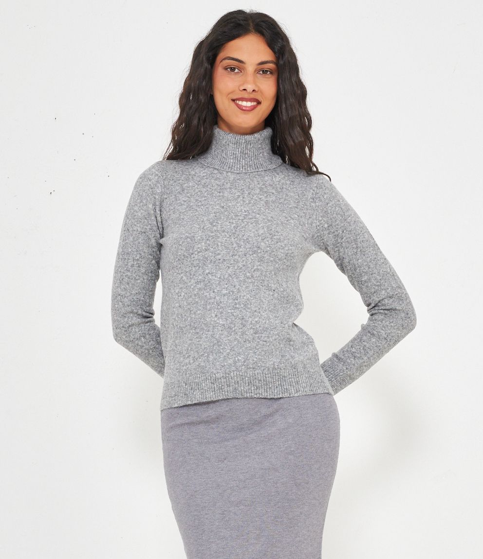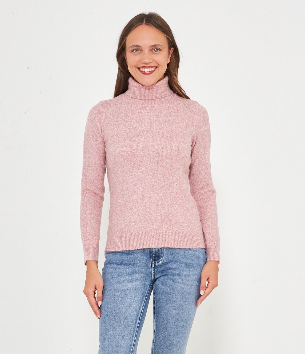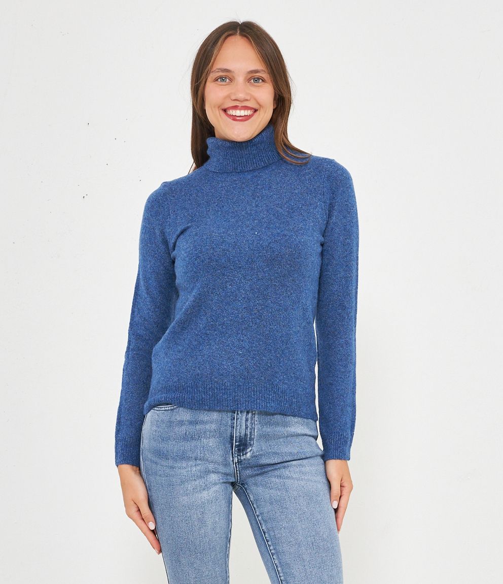 Maglia a collo alto con risvolto, bordi elastici a costine.