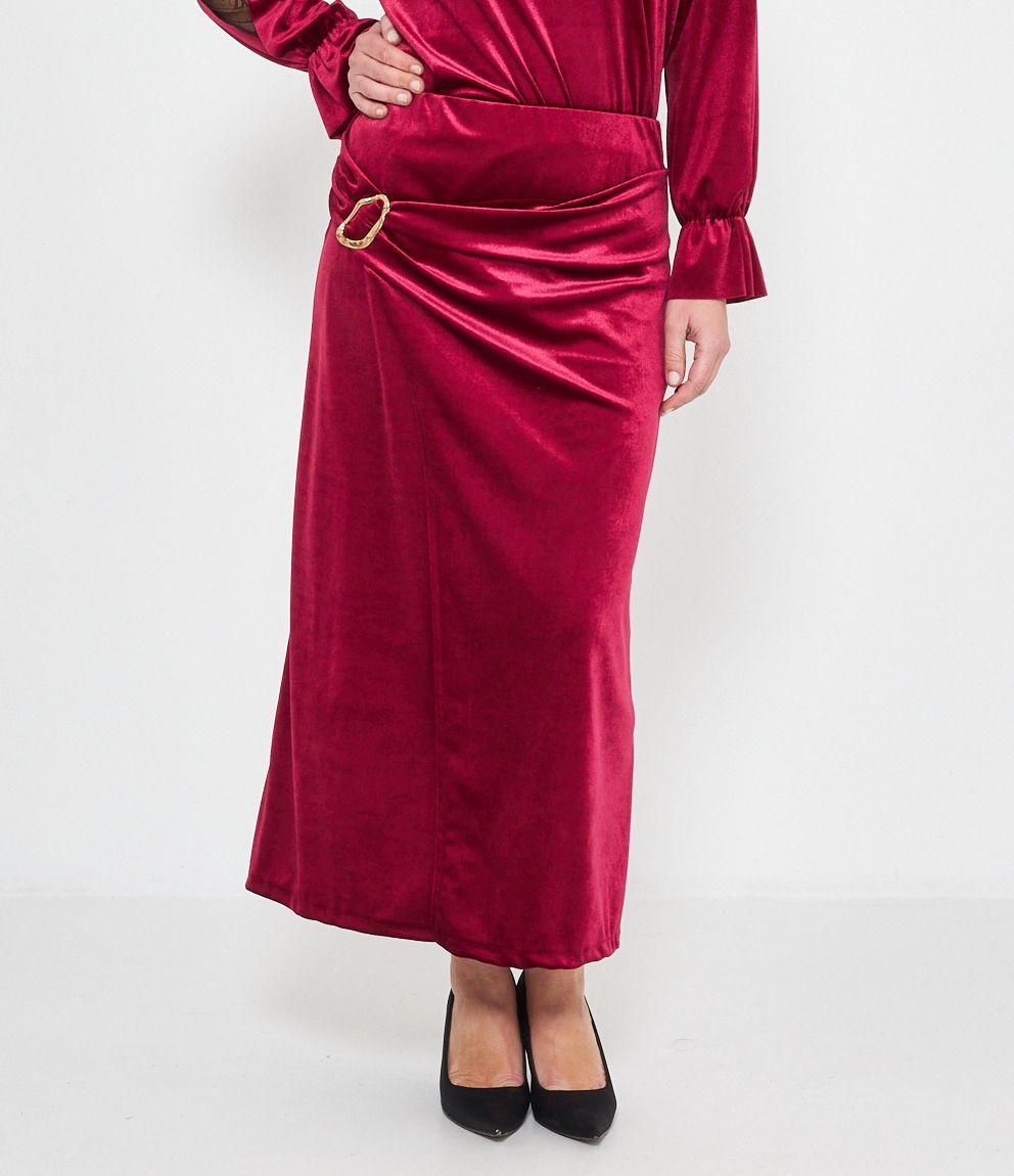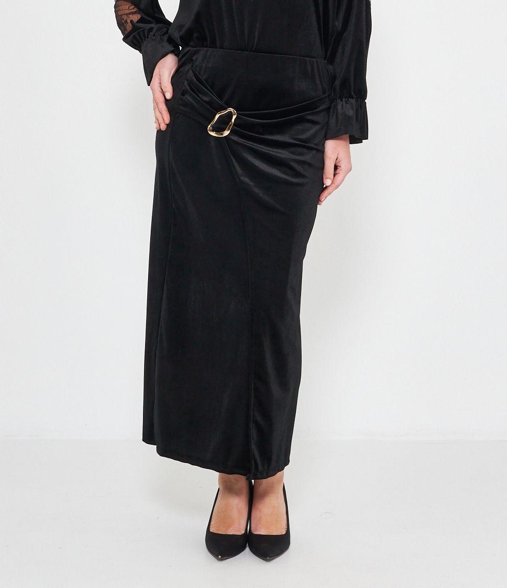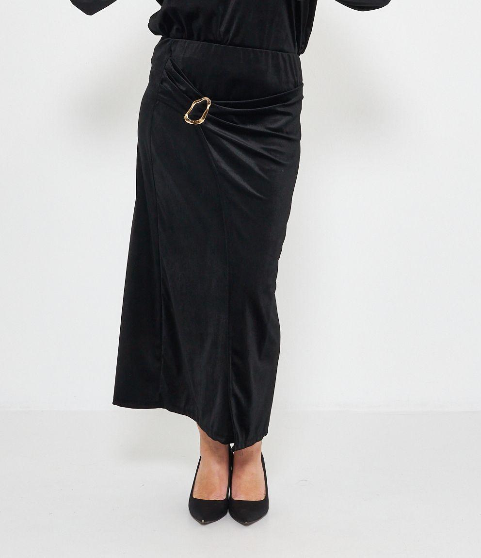 Gonna midi in ciniglia con spacco e dettaglio metallico.