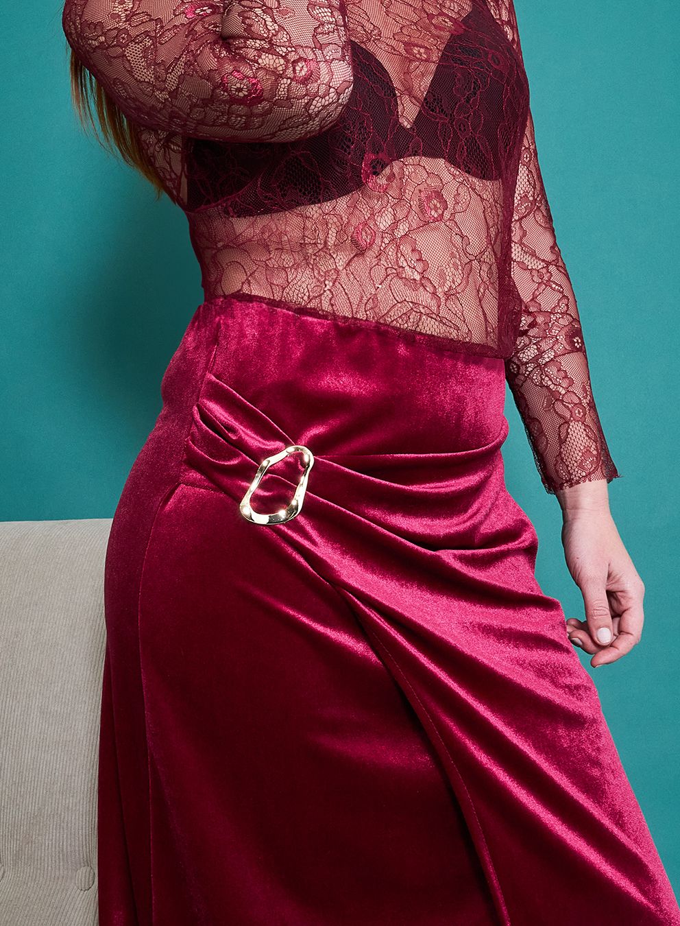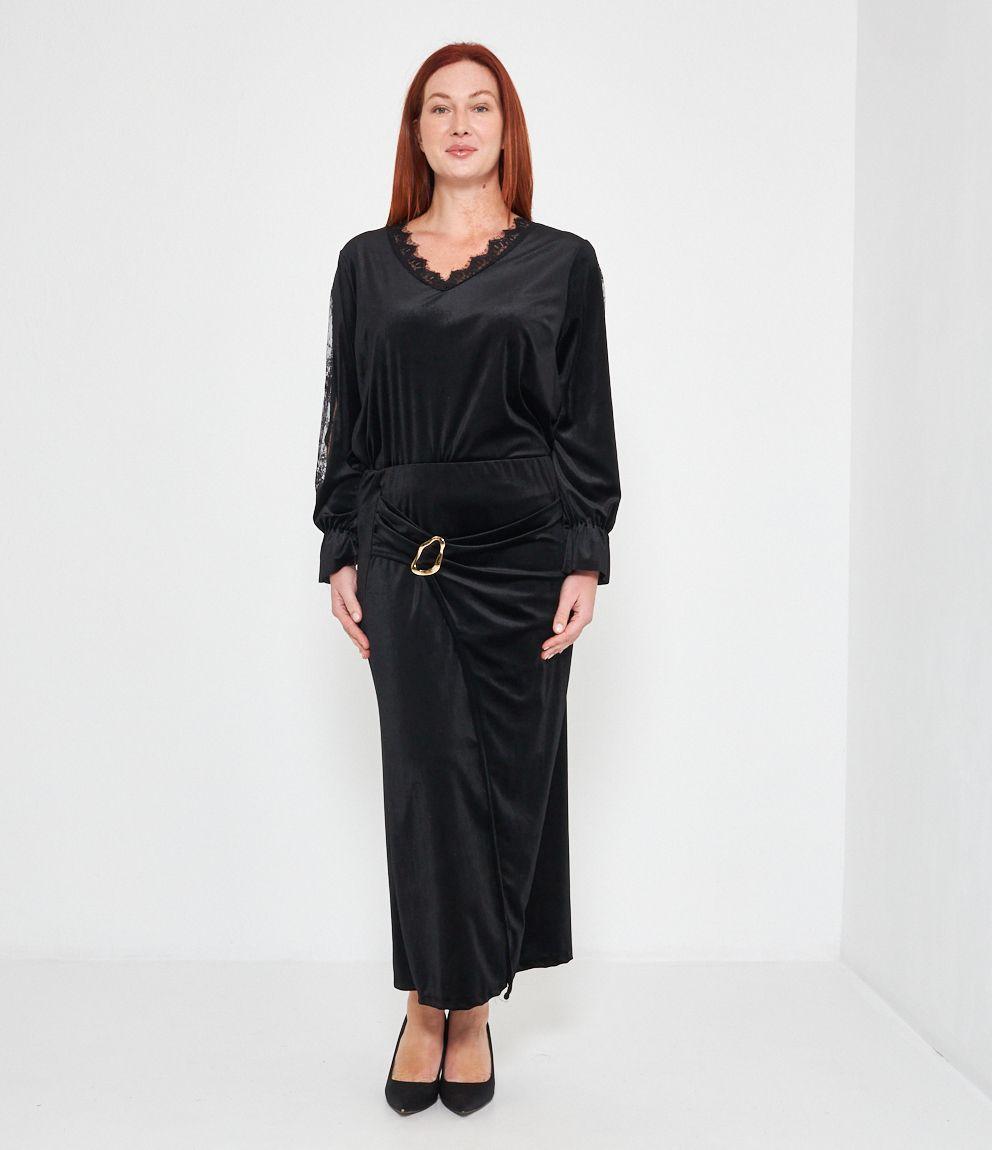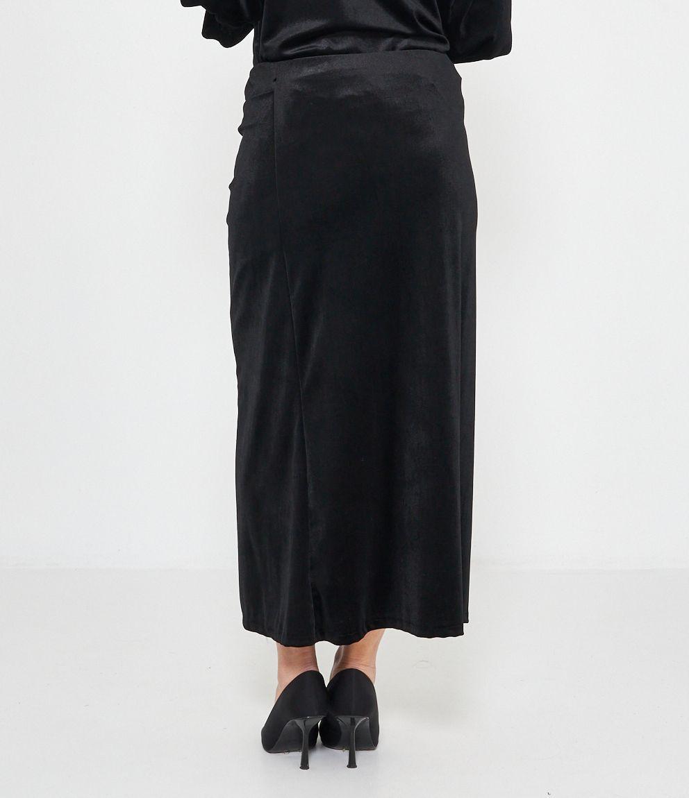 Gonna midi in ciniglia con spacco e dettaglio metallico.