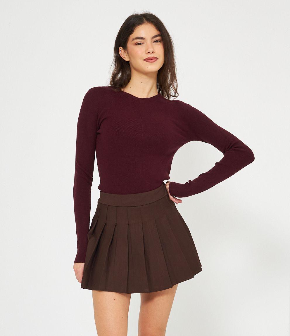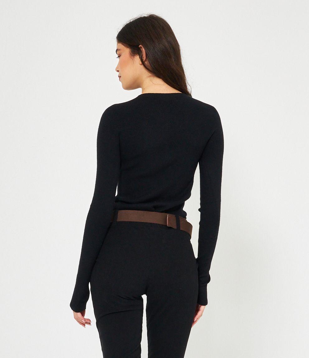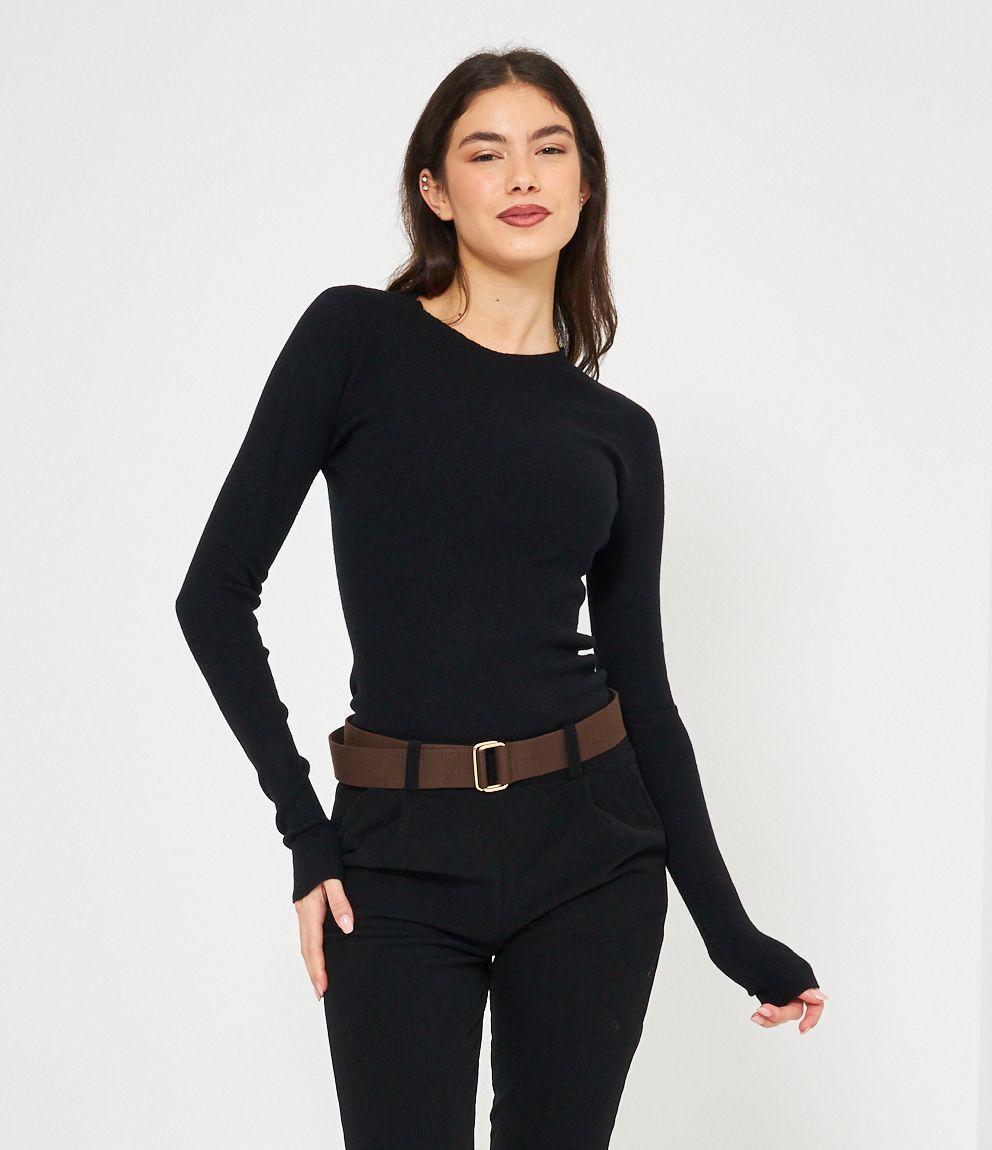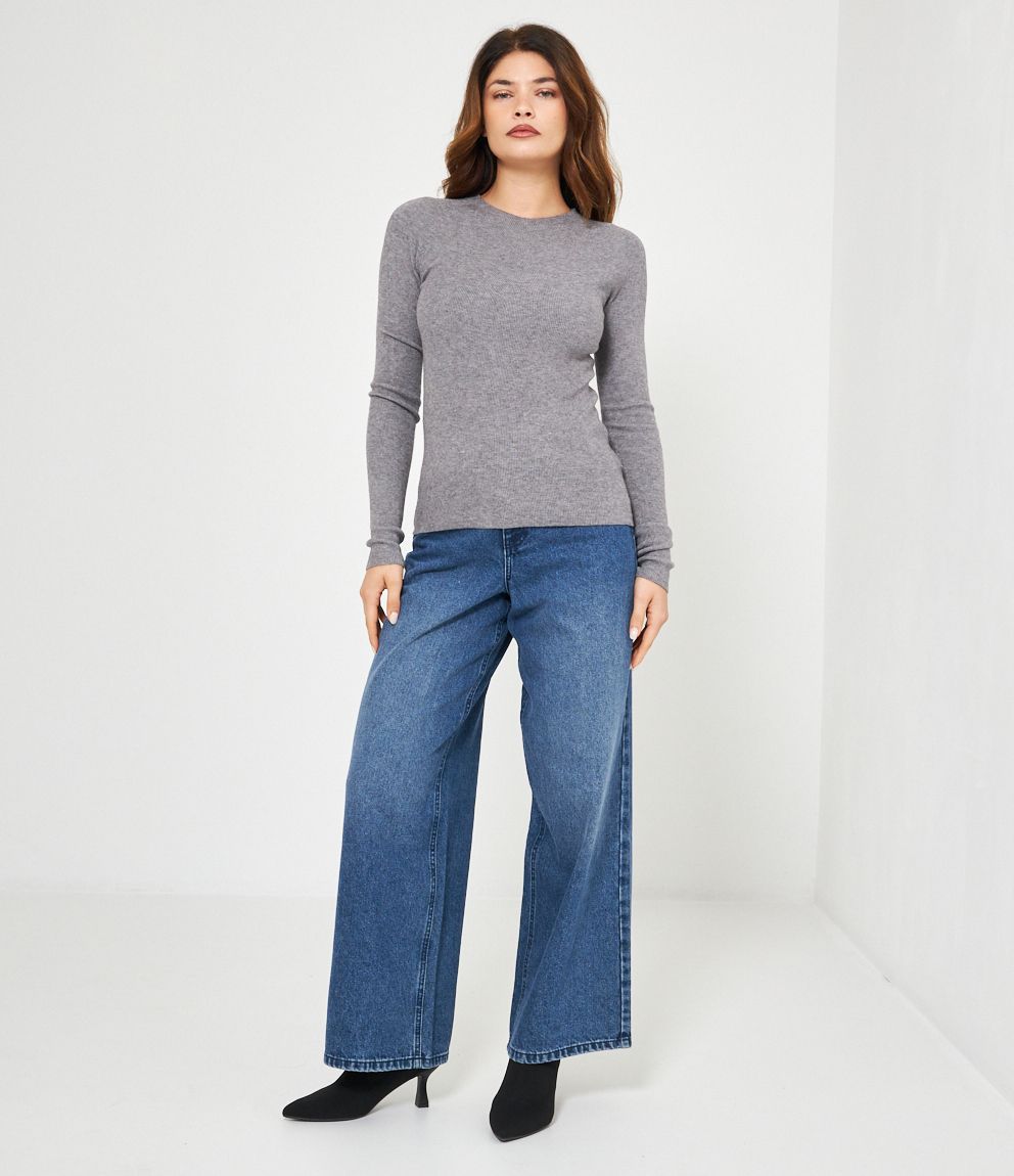 Maglia in viscosa a costine, slim fit a girocollo.