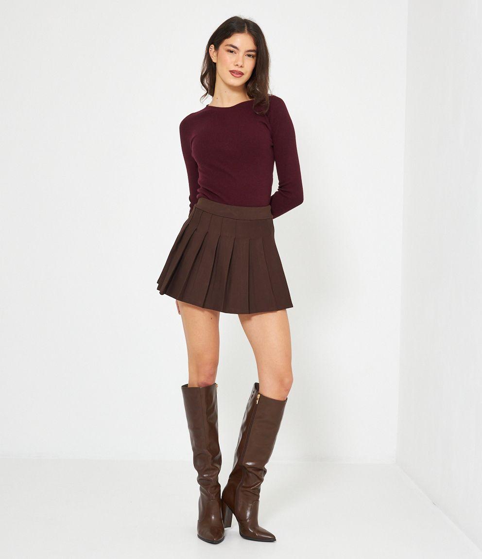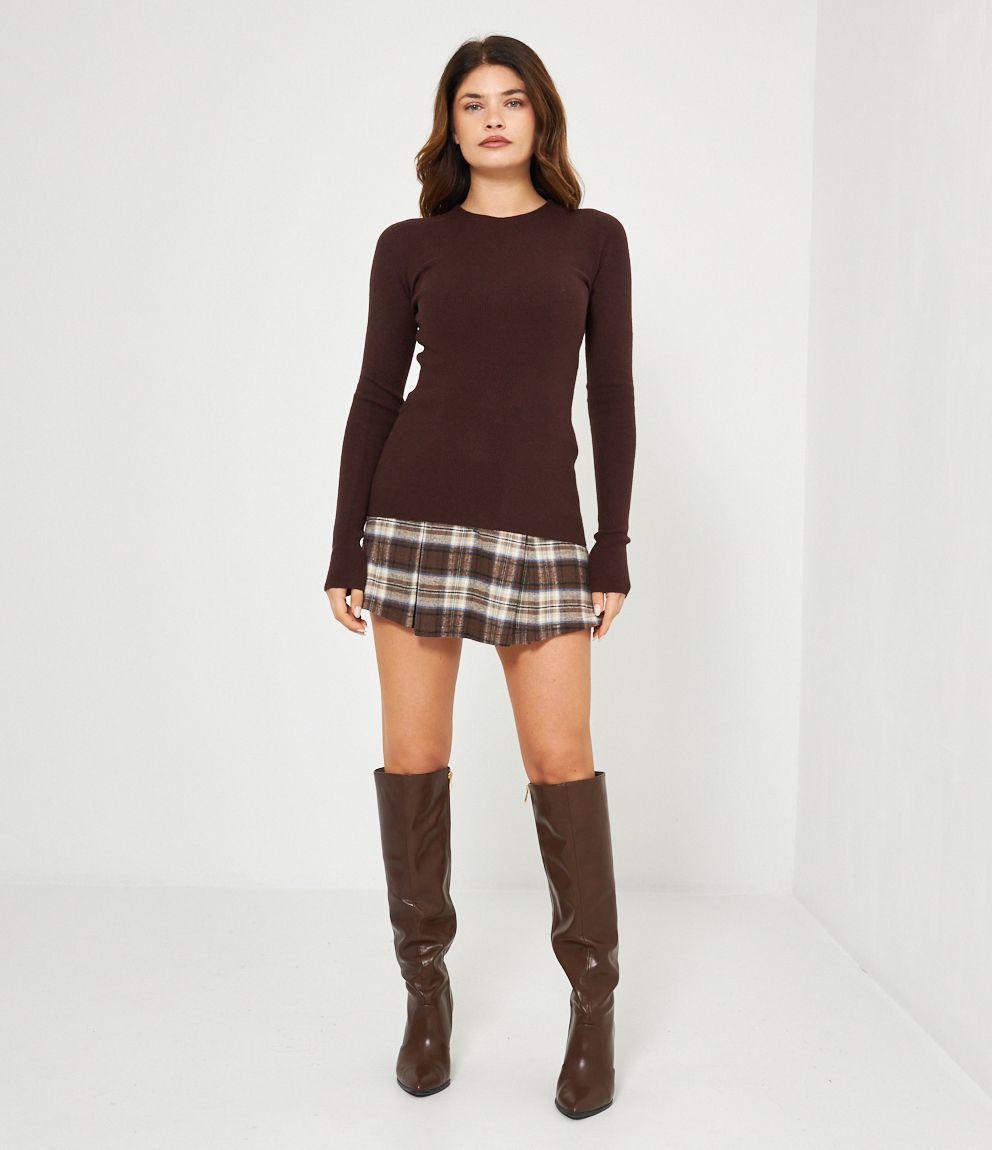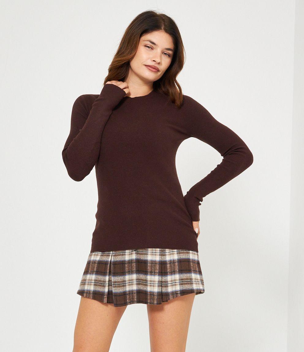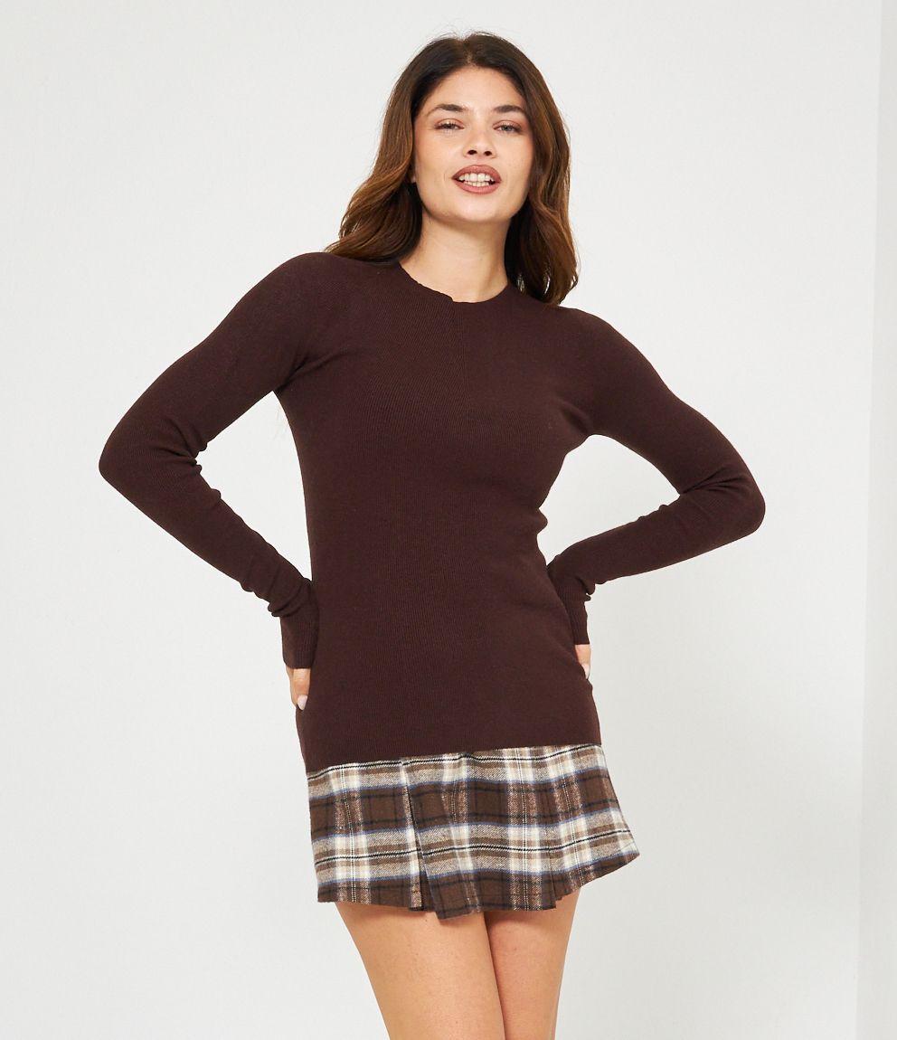 Maglia in viscosa a costine, slim fit a girocollo.