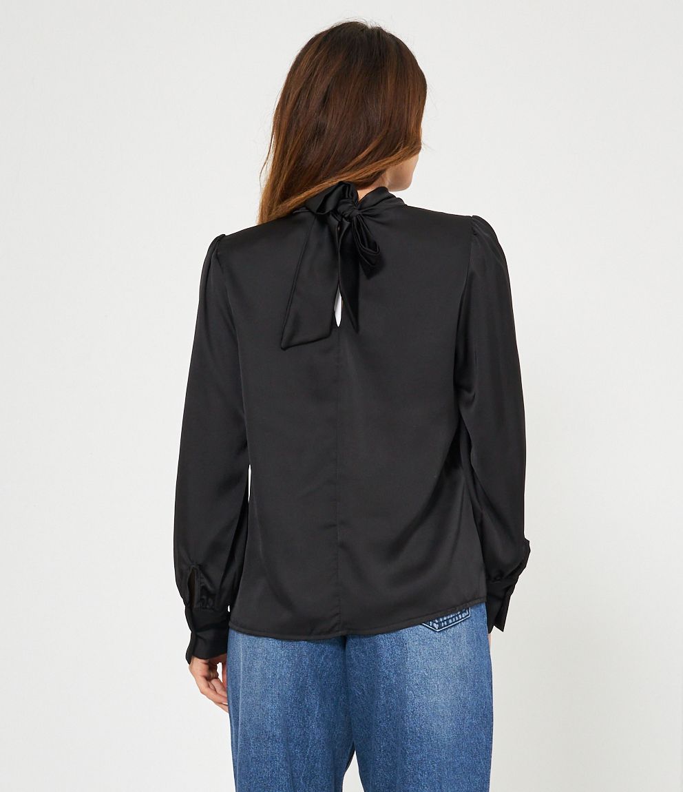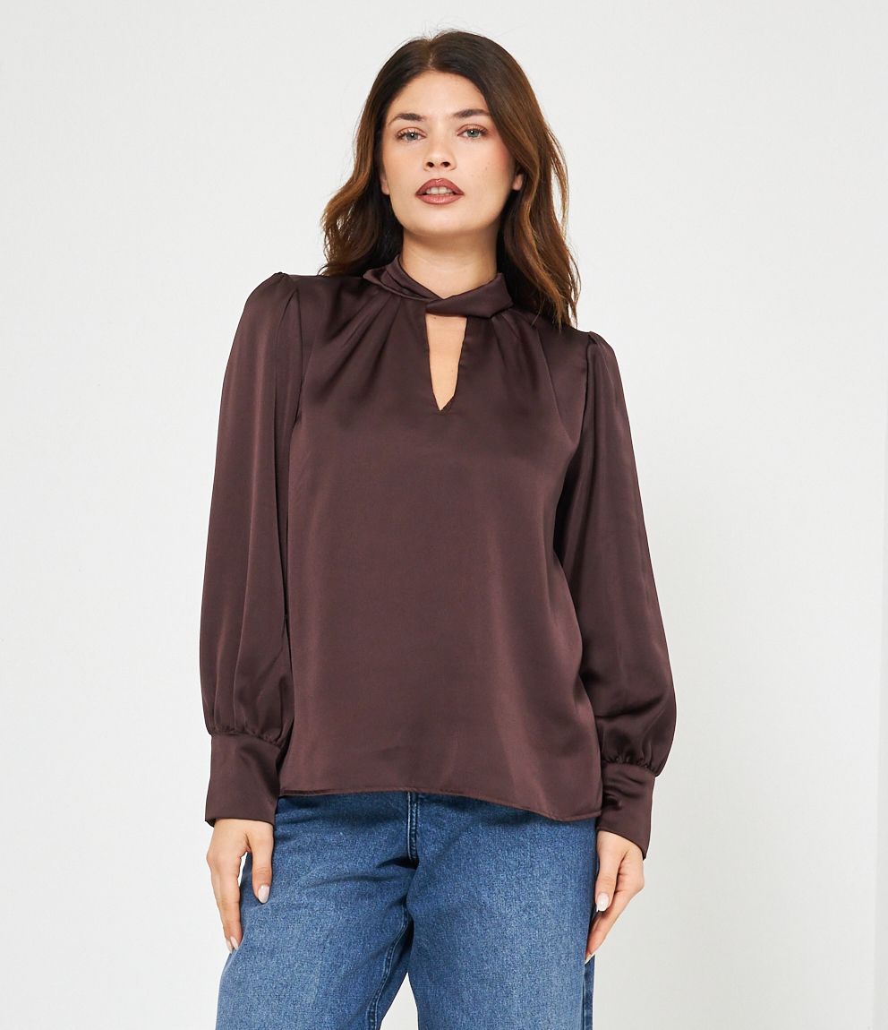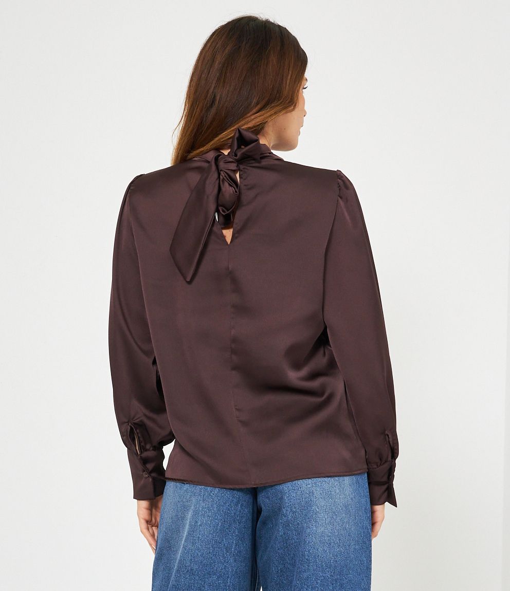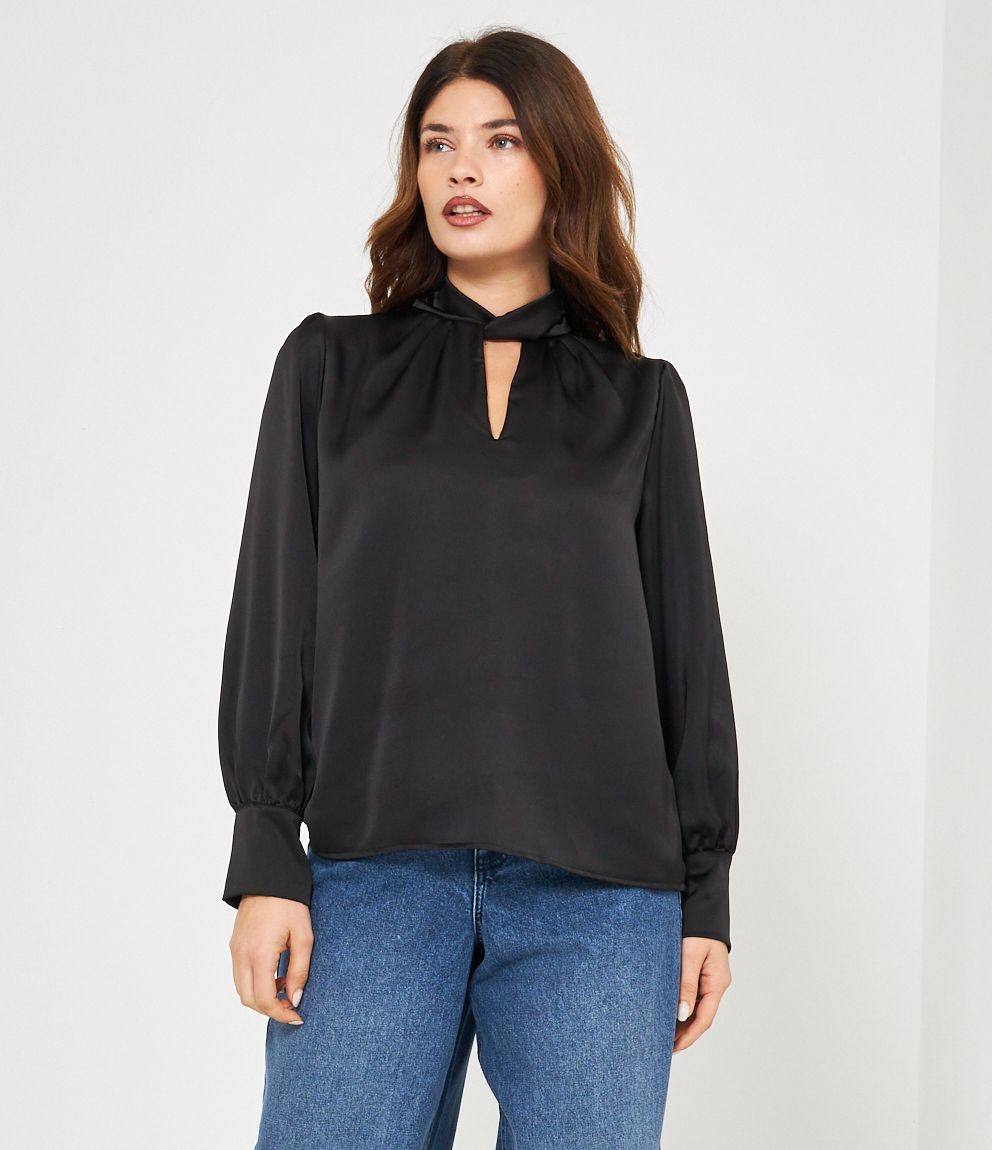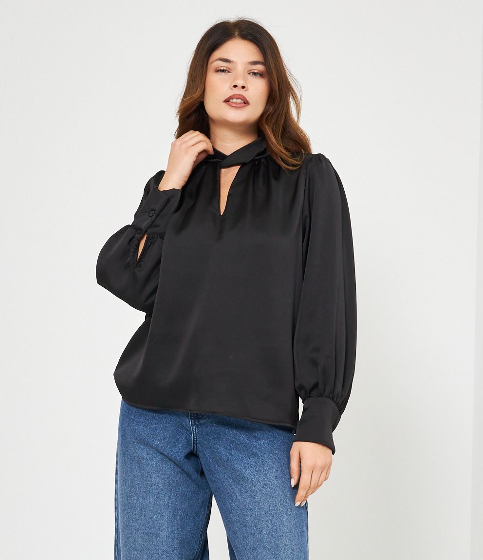 Casacca in raso con cut out frontale e lacci regolabili sul retro.