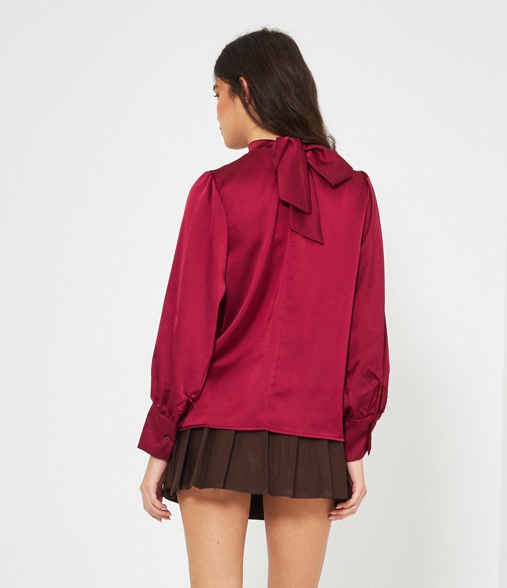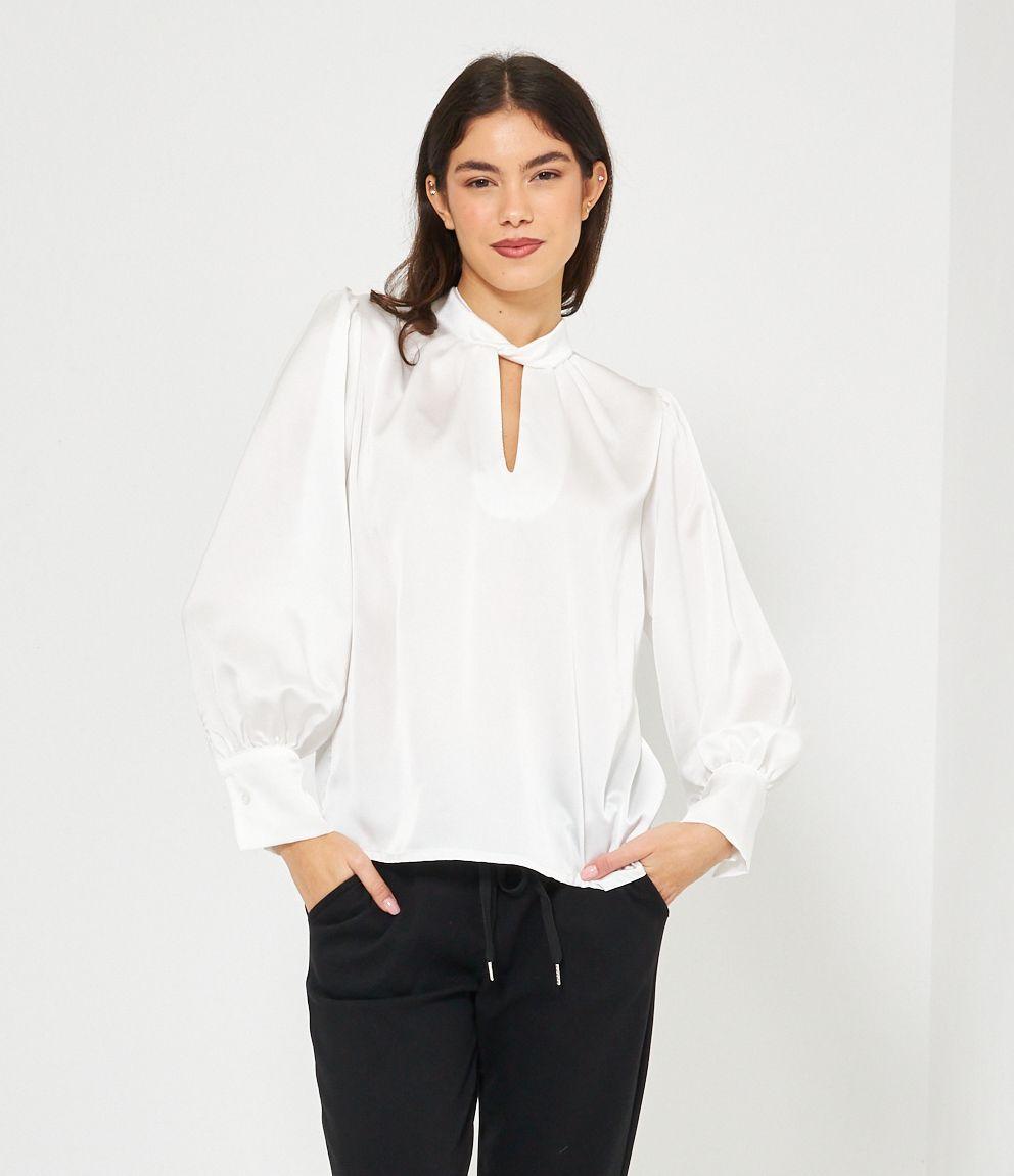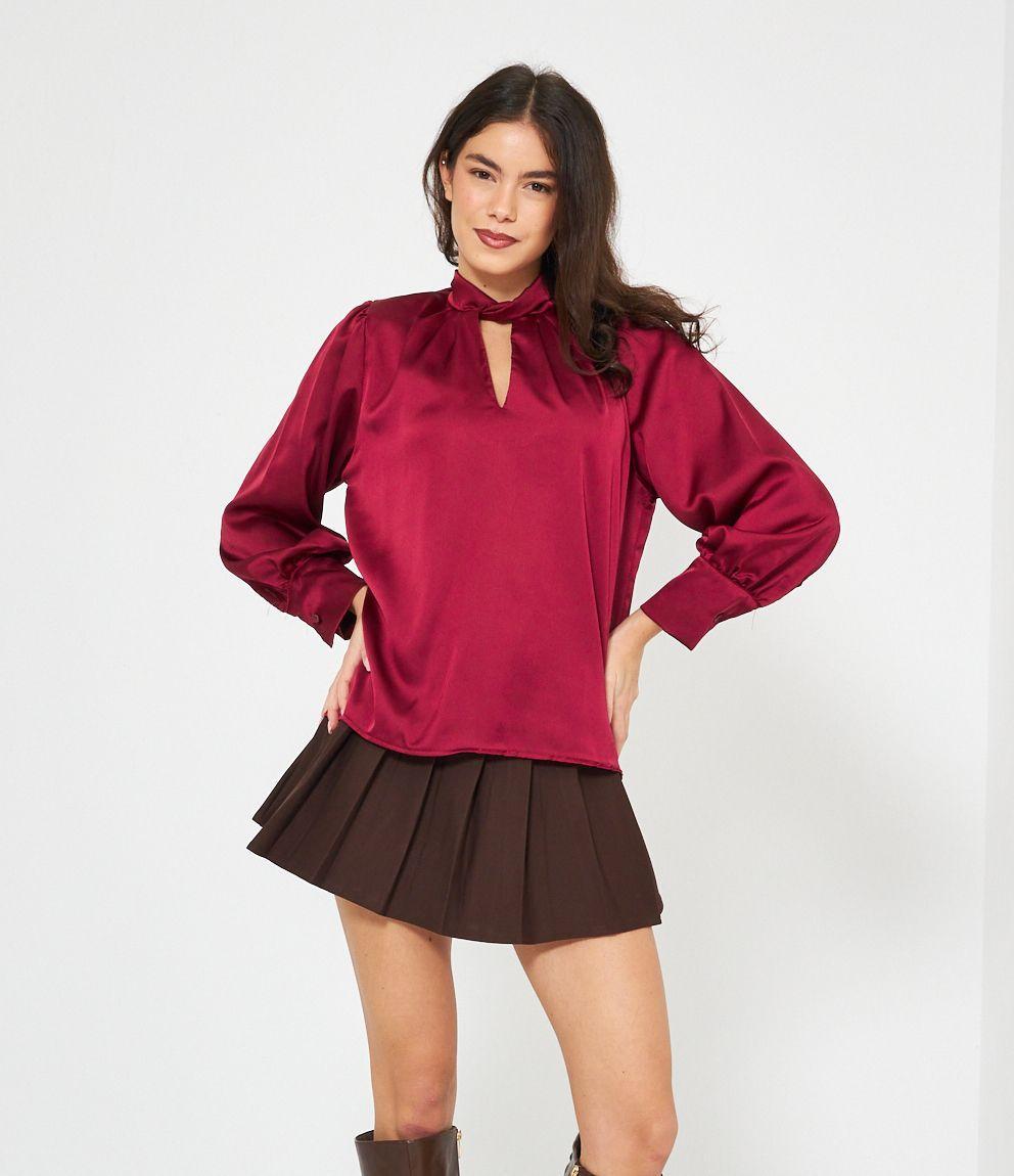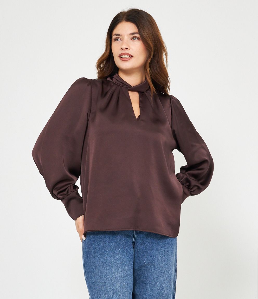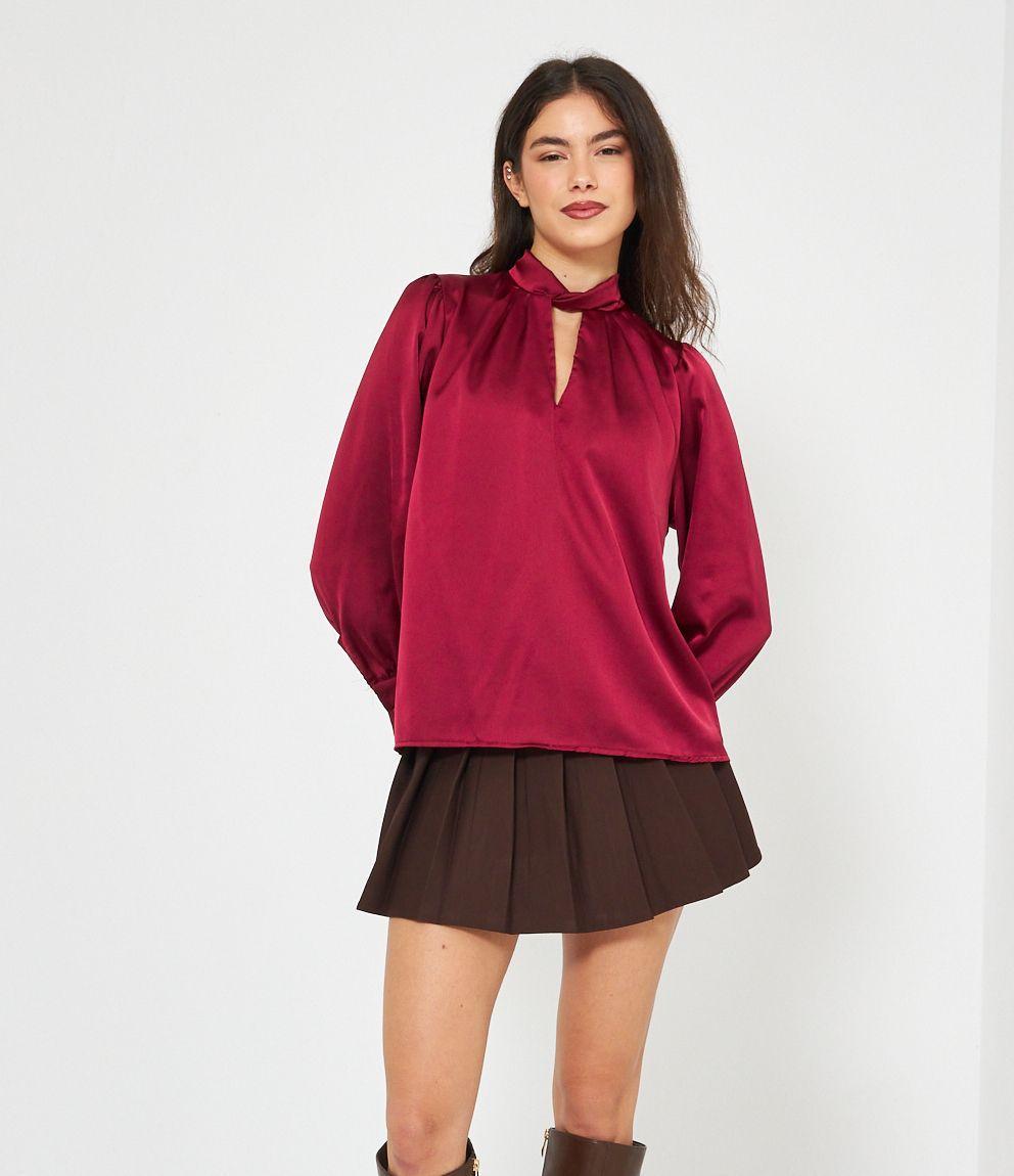 Casacca in raso con cut out frontale e lacci regolabili sul retro.
