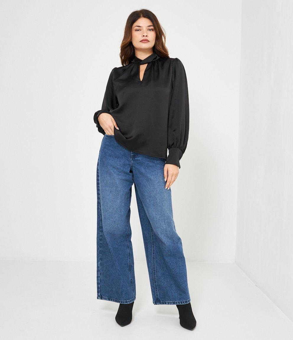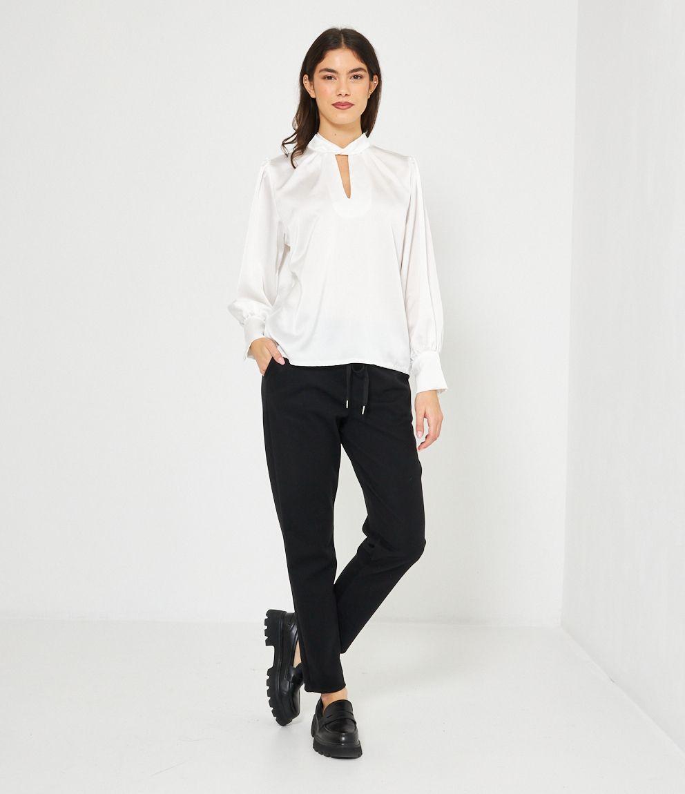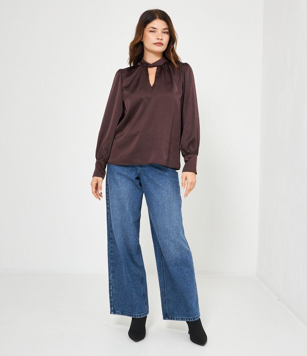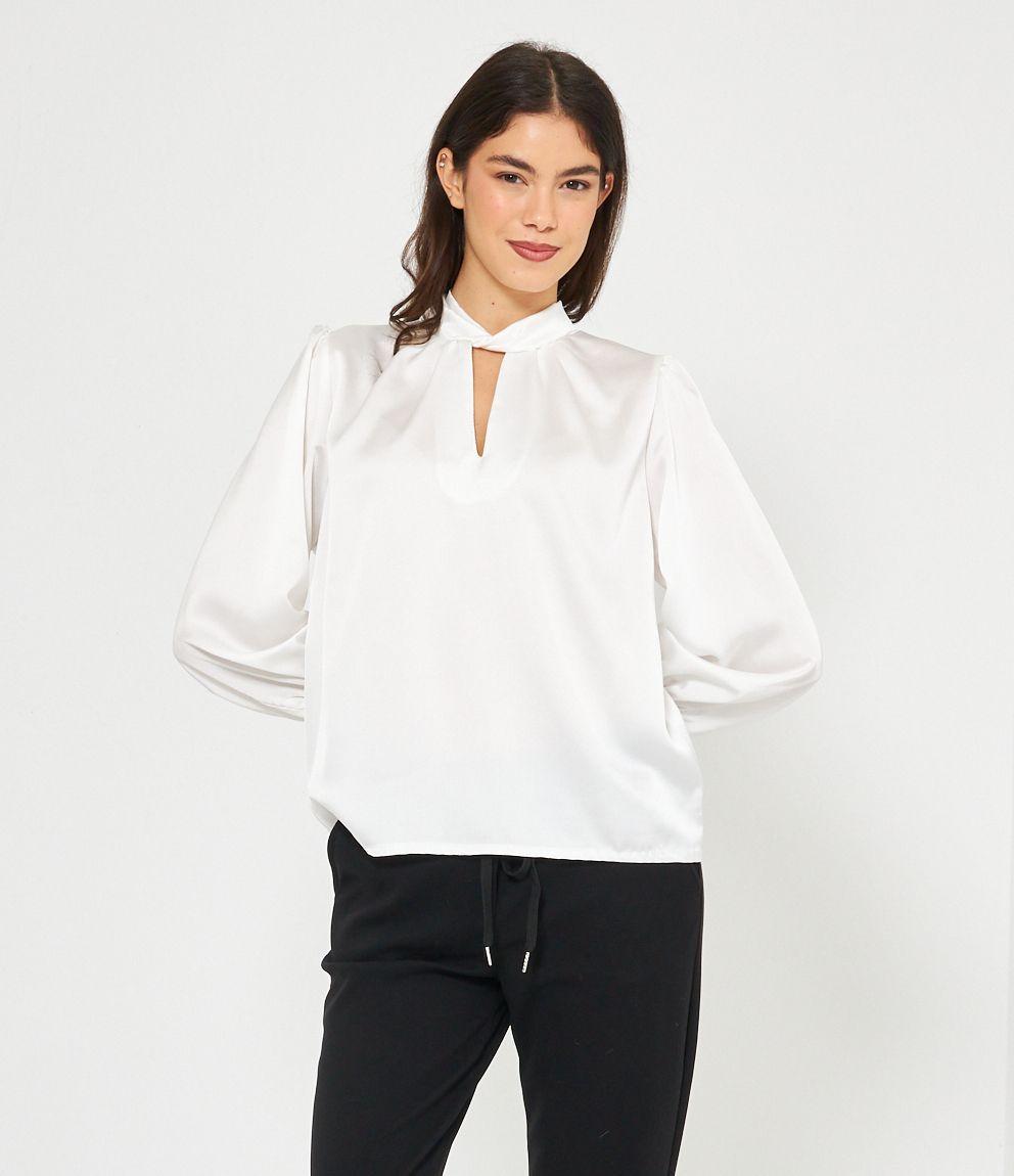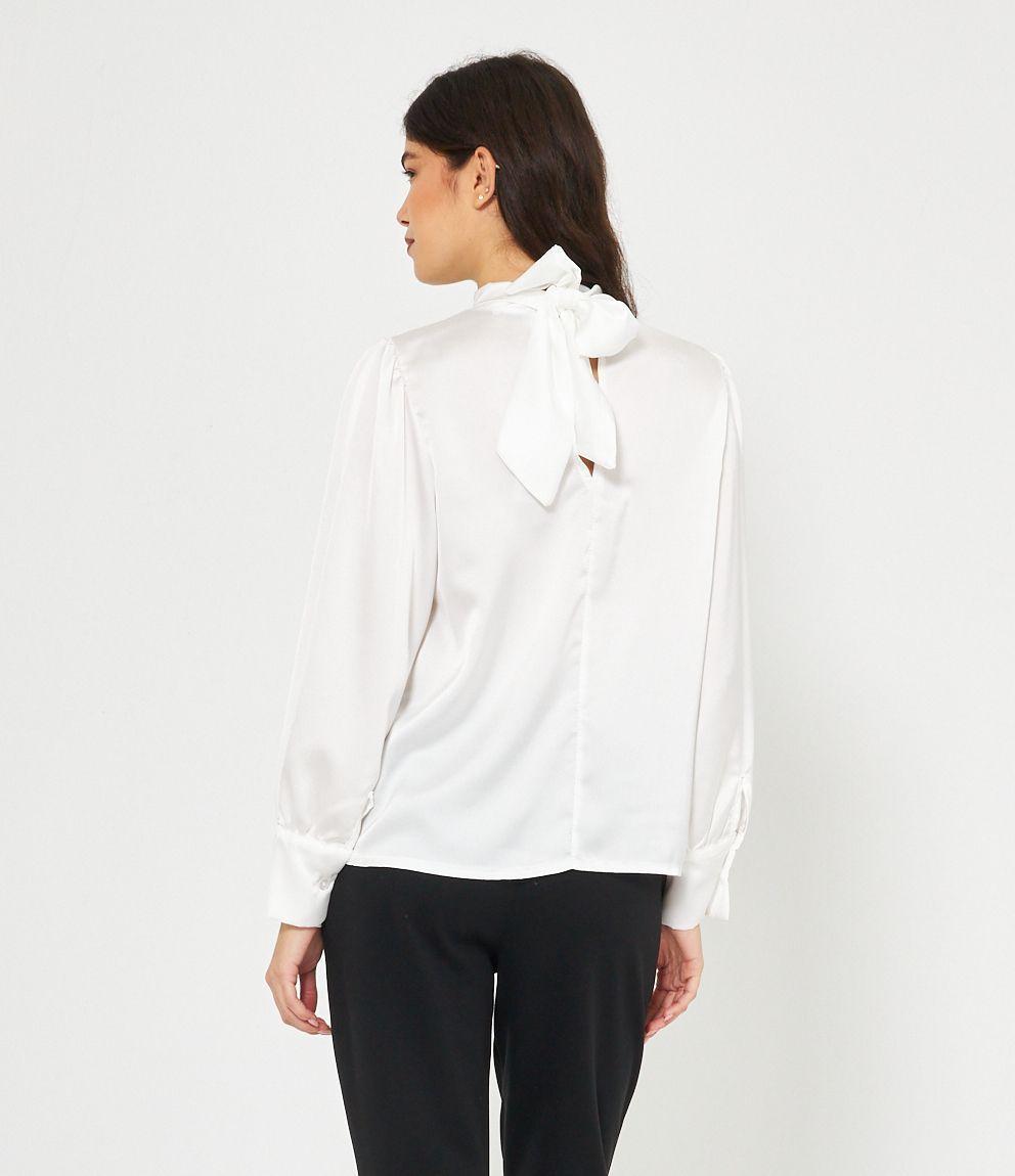 Casacca in raso con cut out frontale e lacci regolabili sul retro.