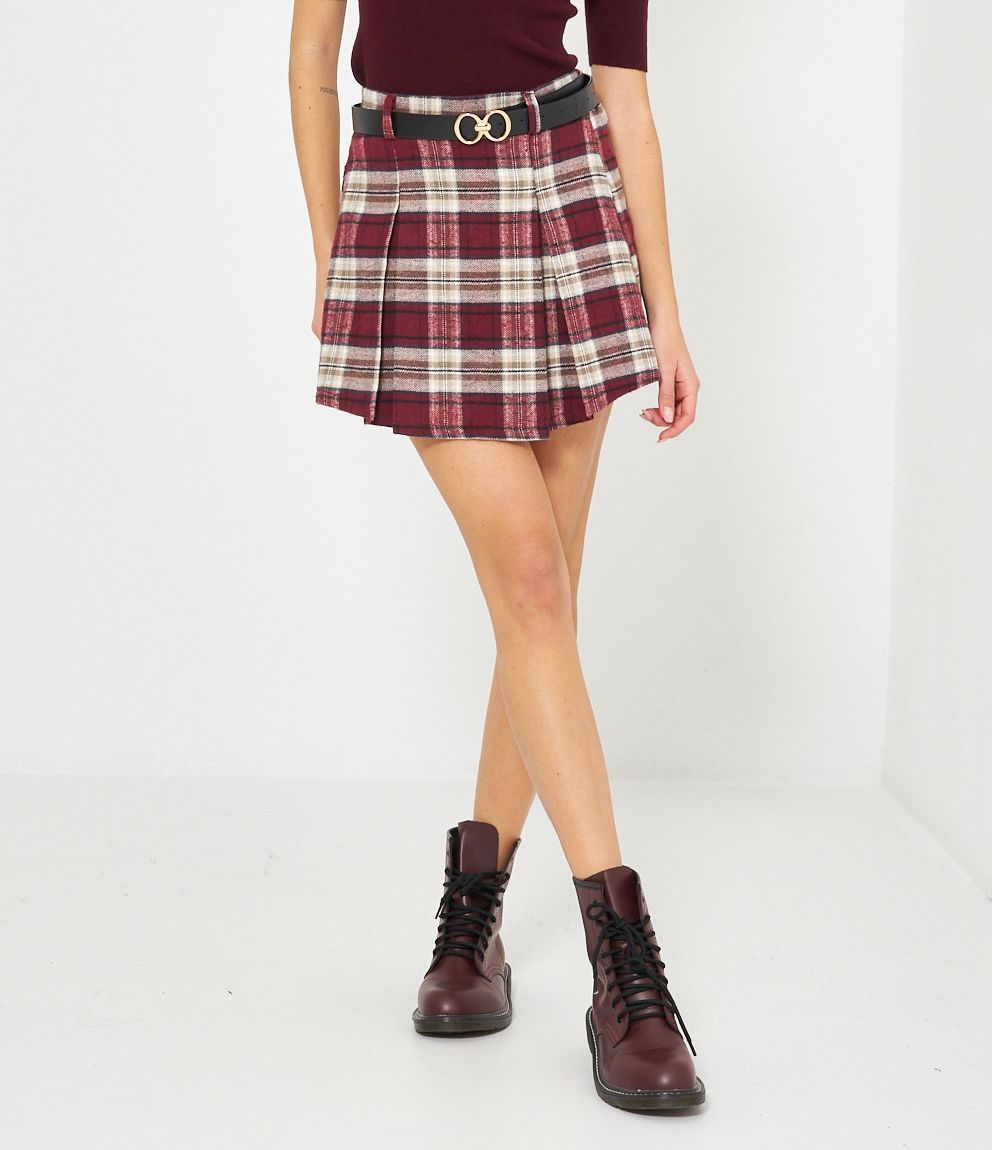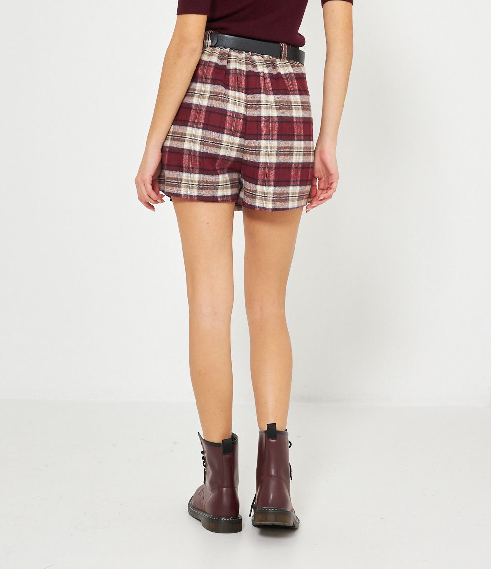 shorts effetto gonna a quadri con cintura ed elastico in vita.