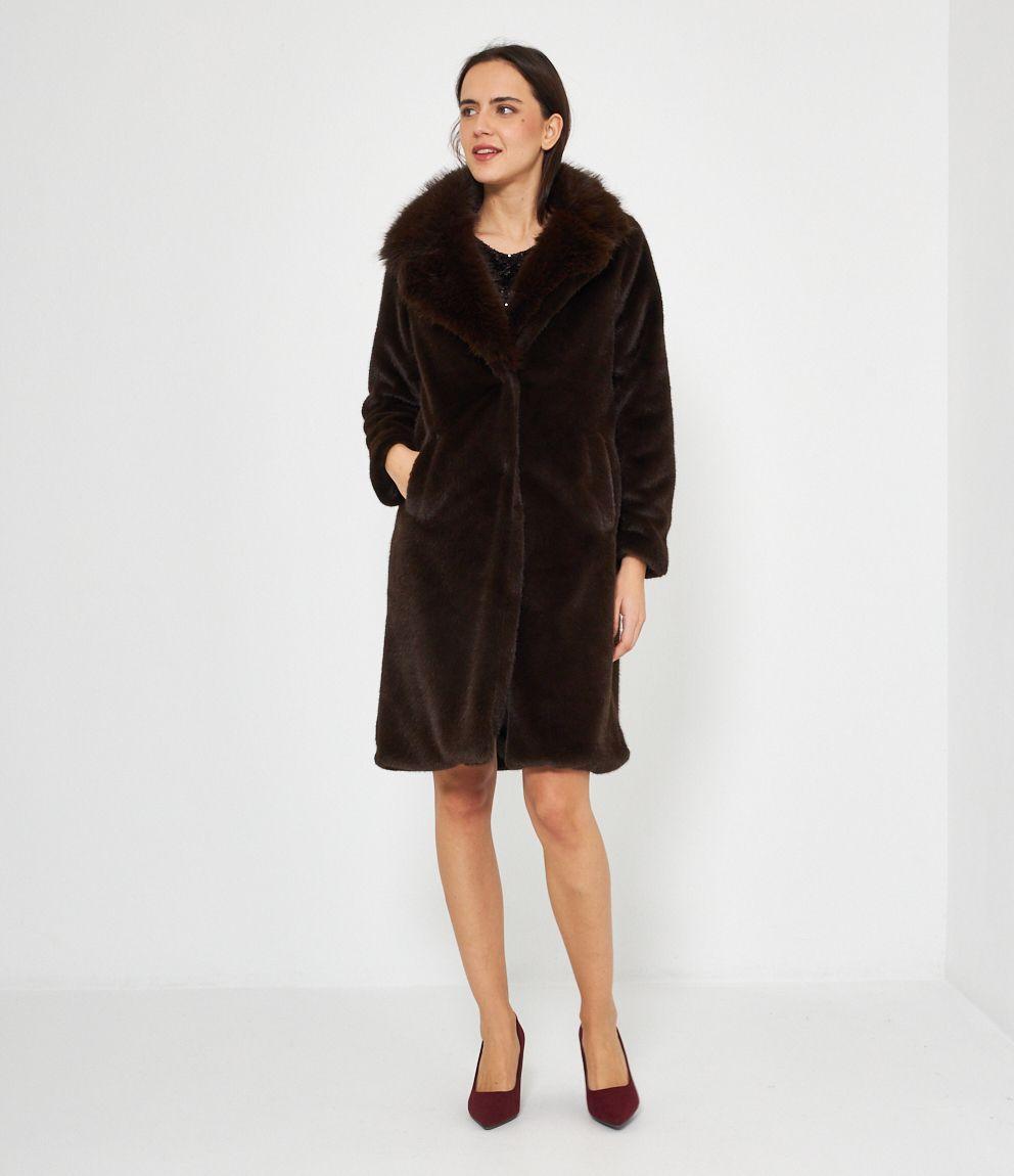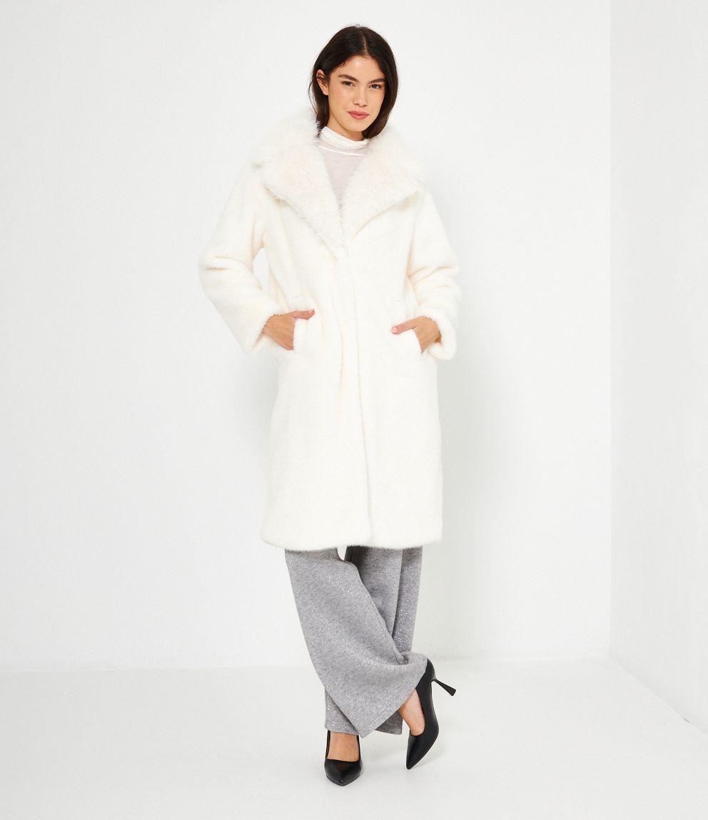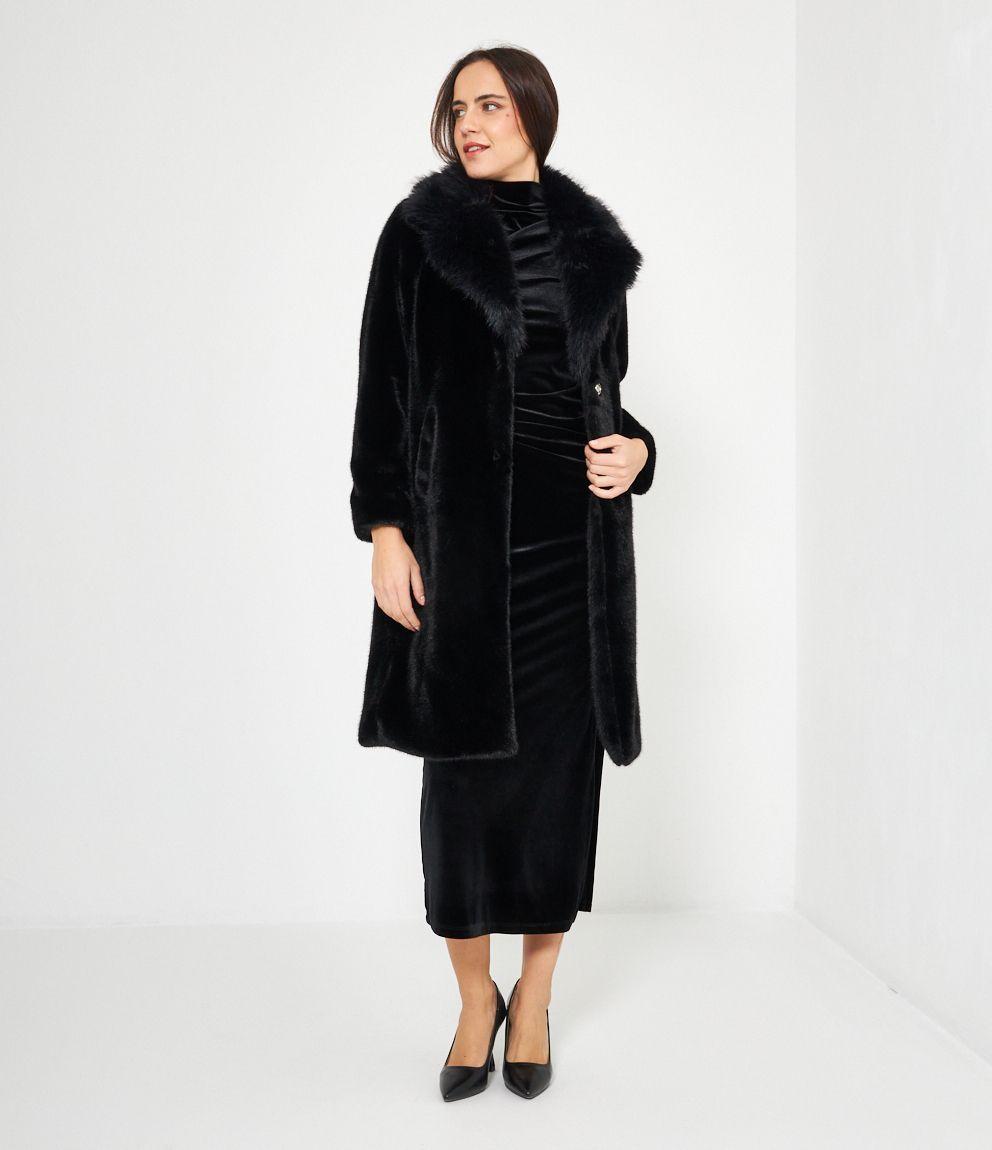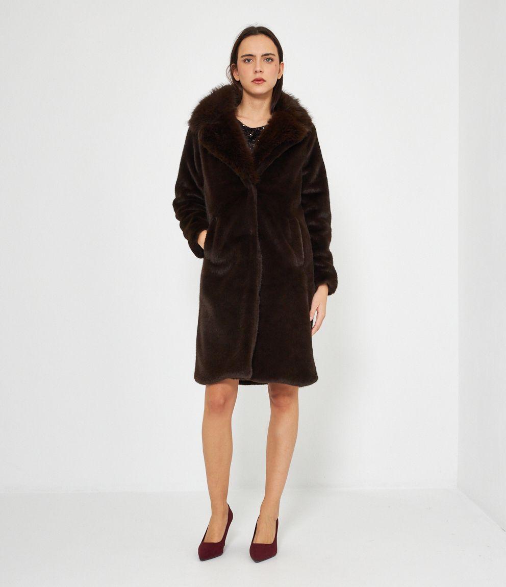 Pelliccia midi con collo revers, bottone centrale e tasche laterali.