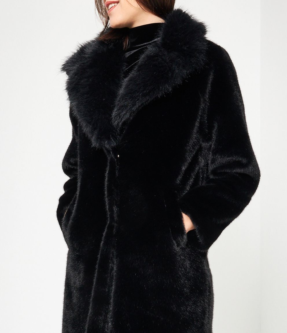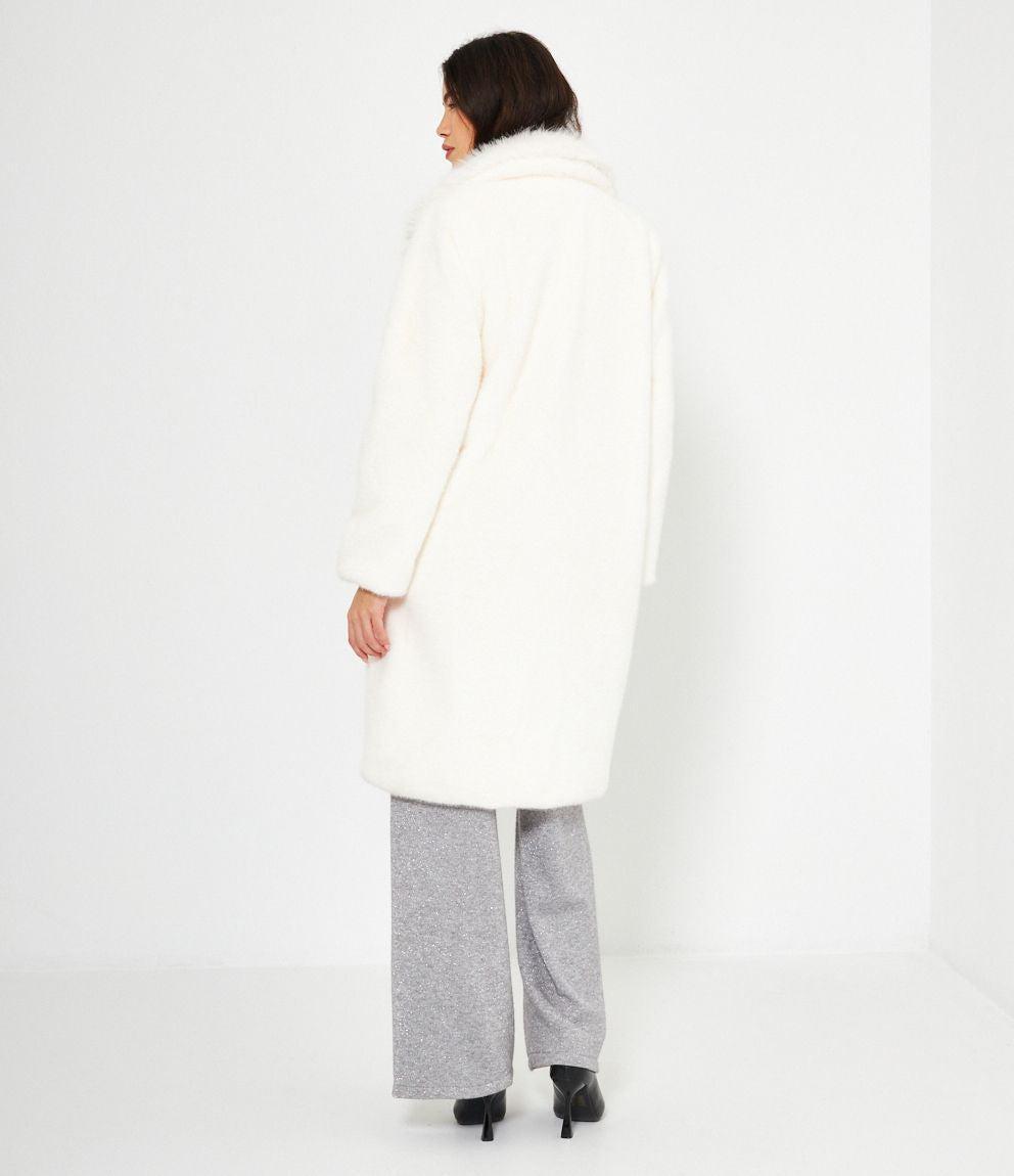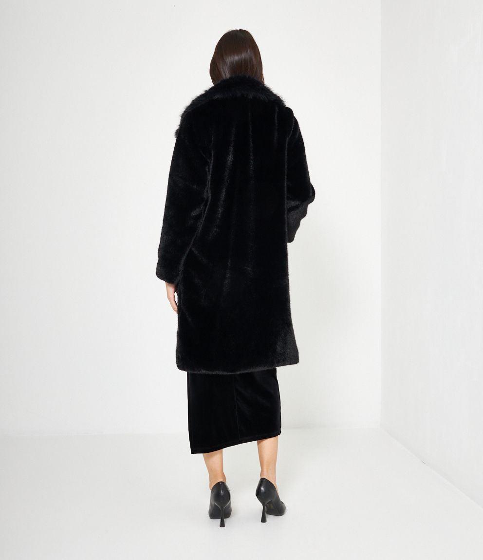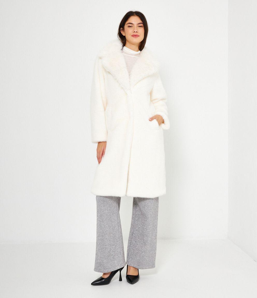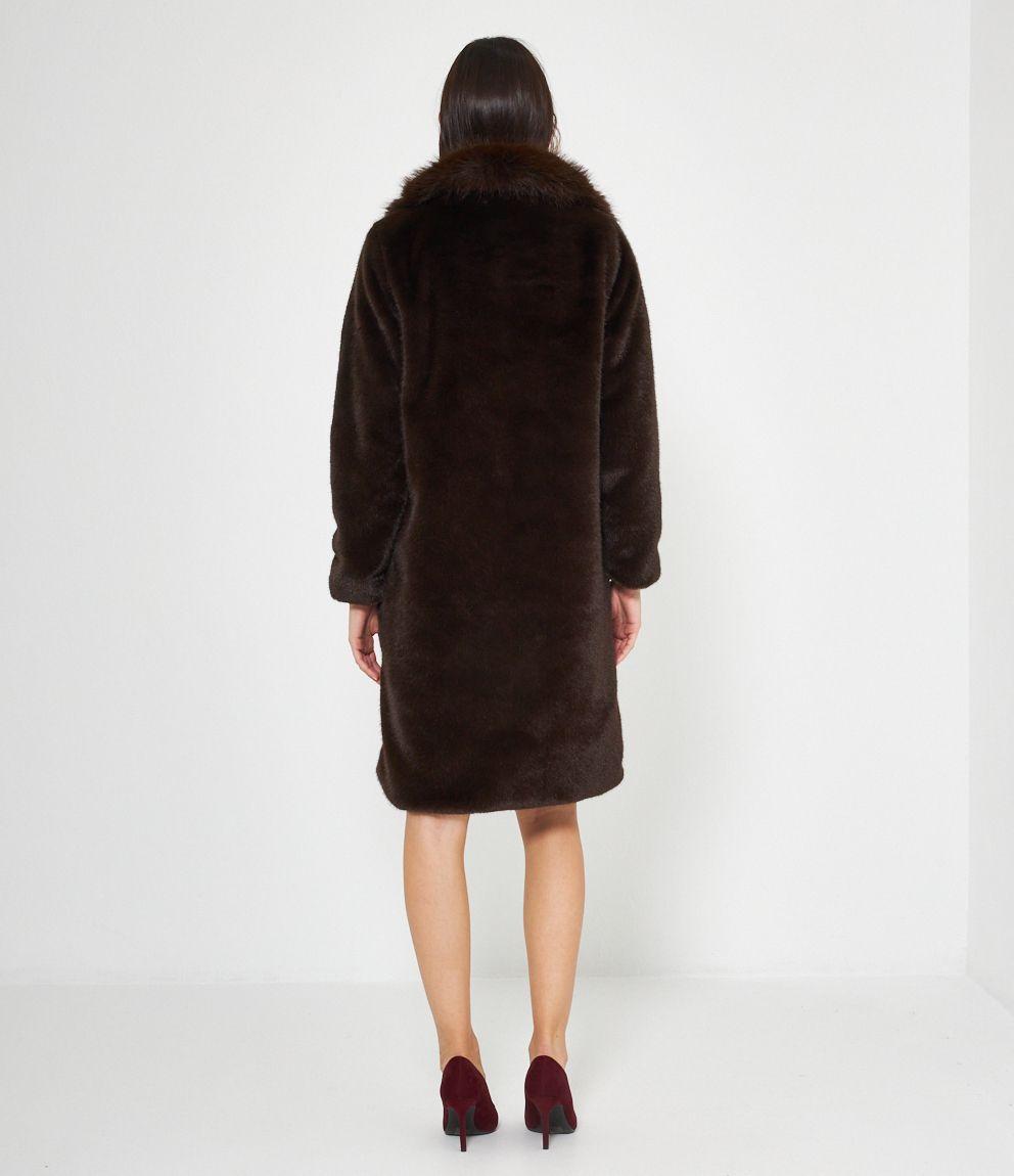 Pelliccia midi con collo revers, bottone centrale e tasche laterali.