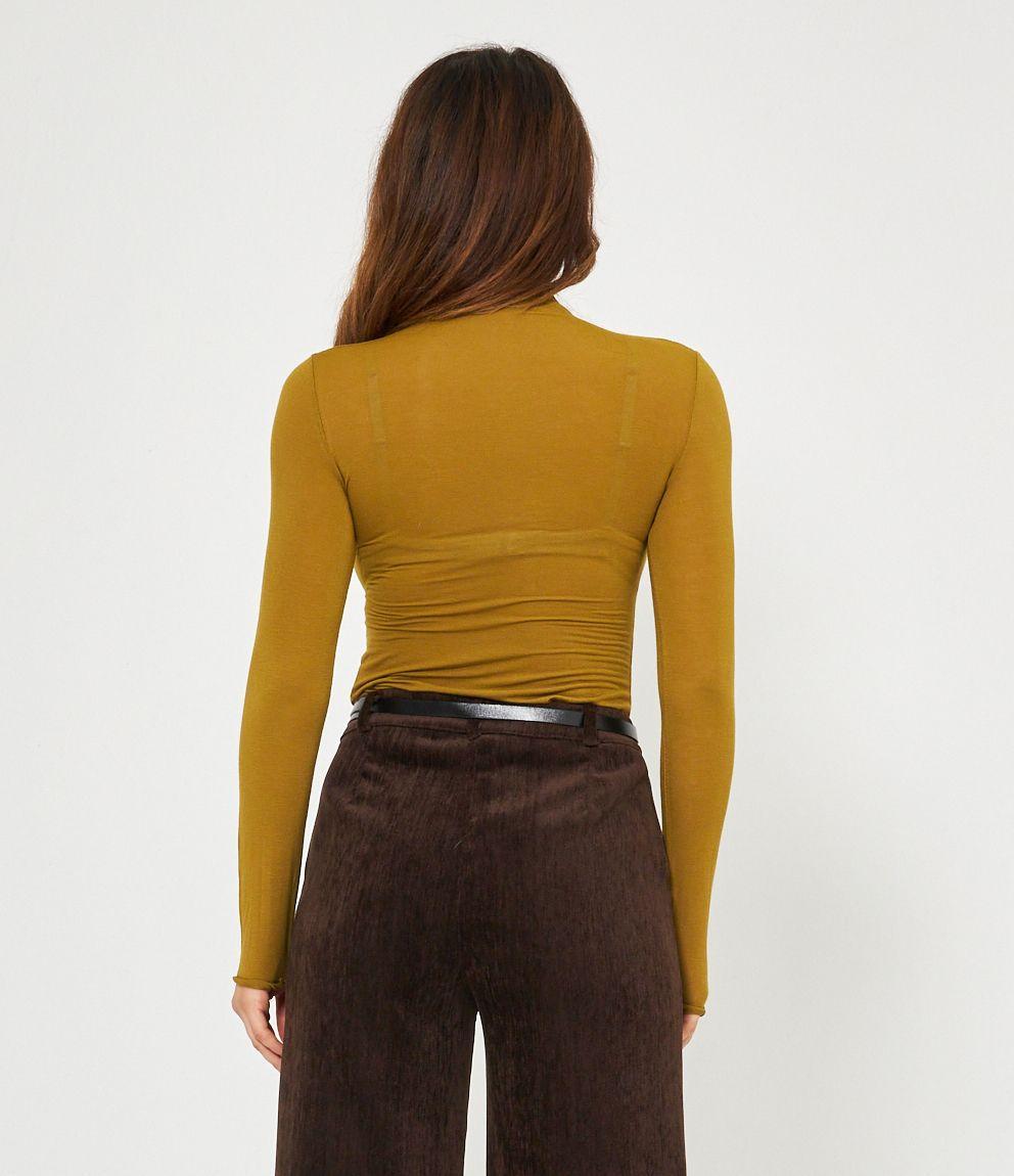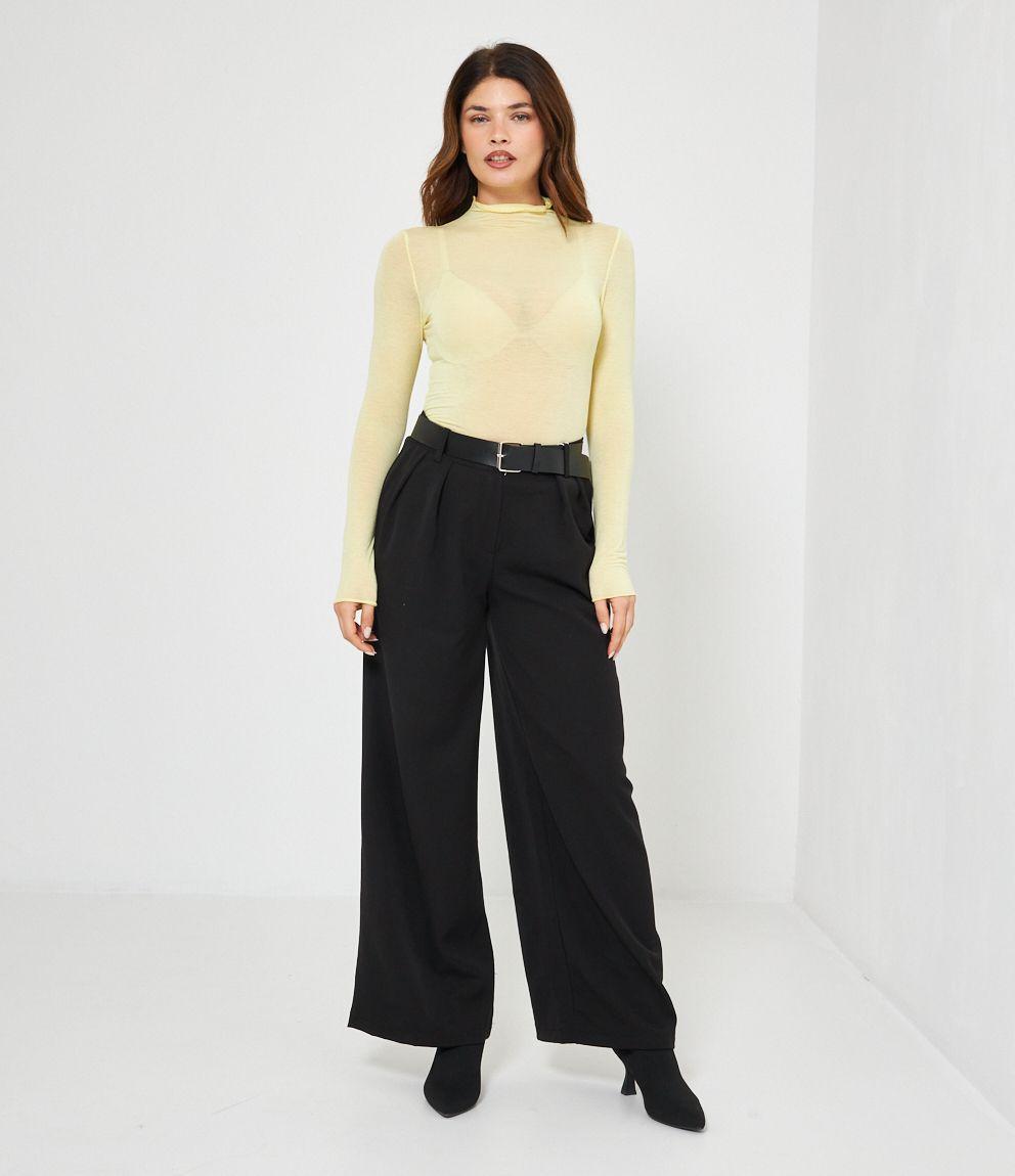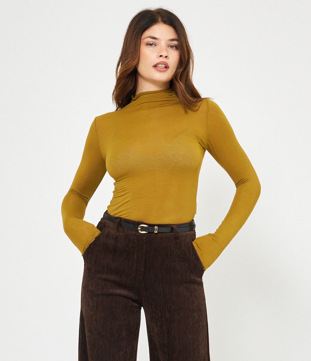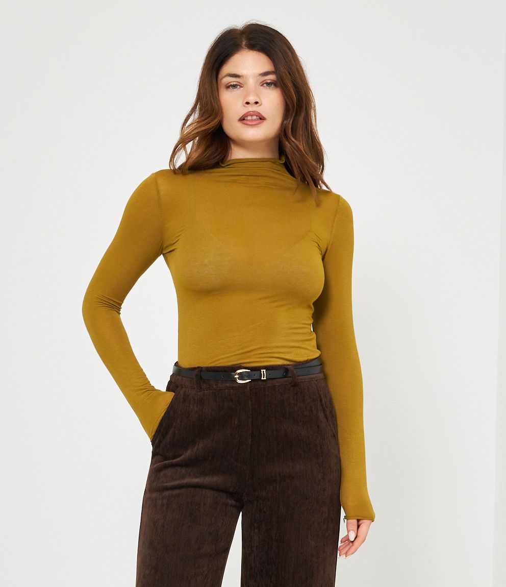 Maglia in modal cashmere semitrasparente a collo alto.