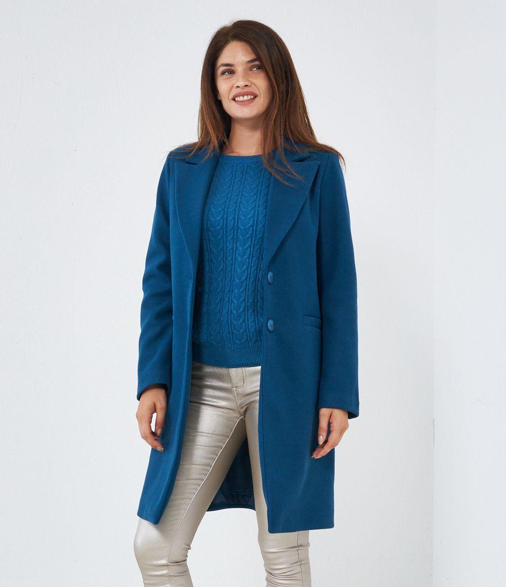 Cappotto con collo revers e chiusura con due bottoni. Tasche a filetto.
