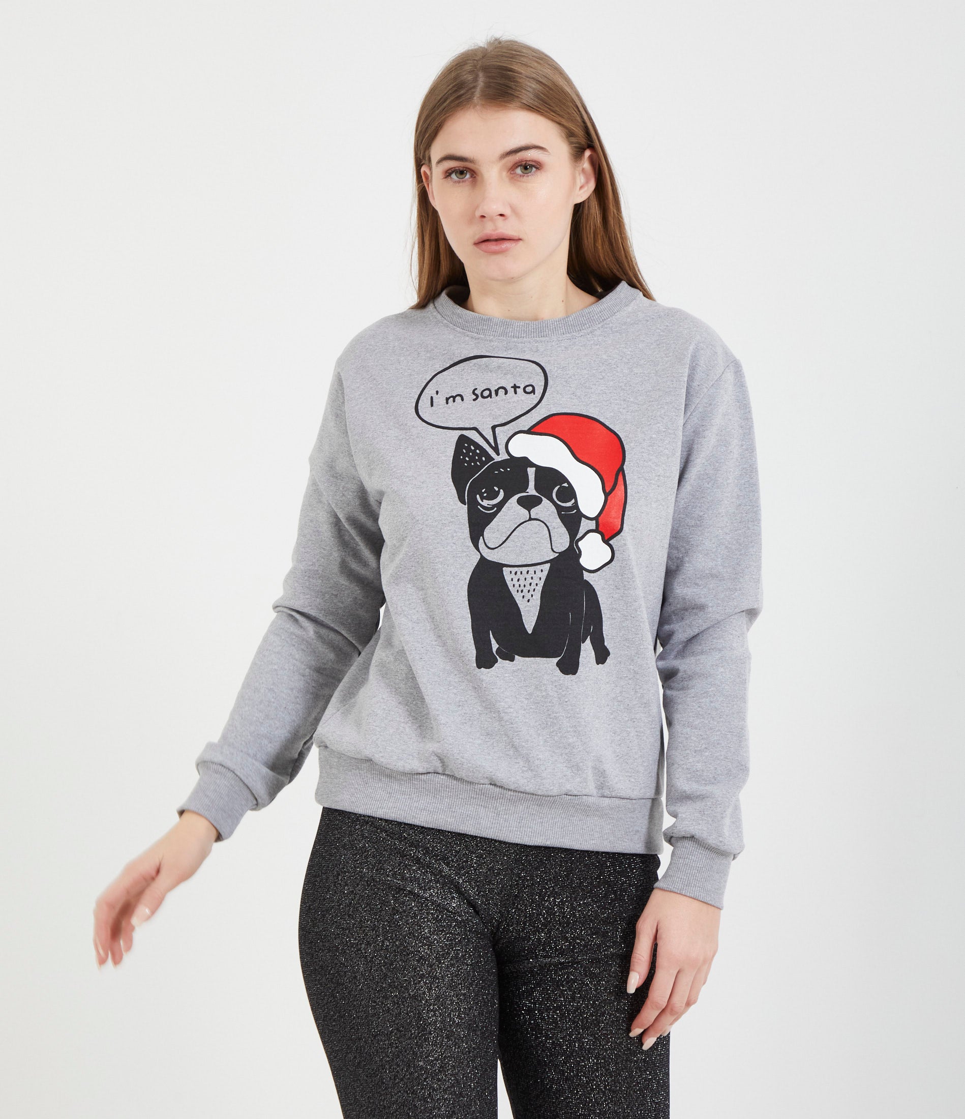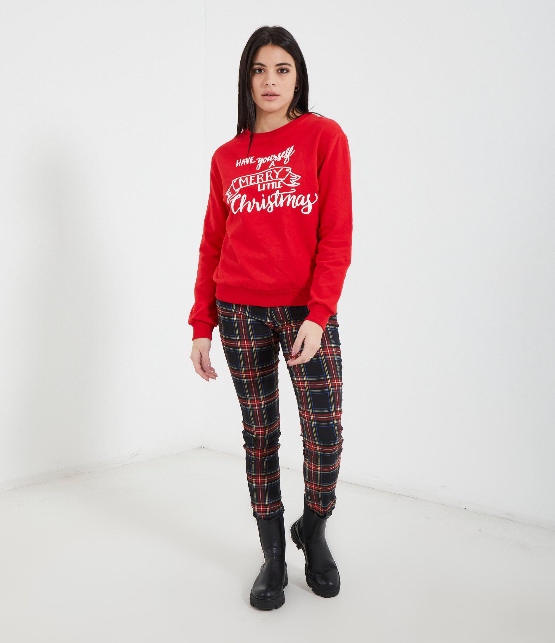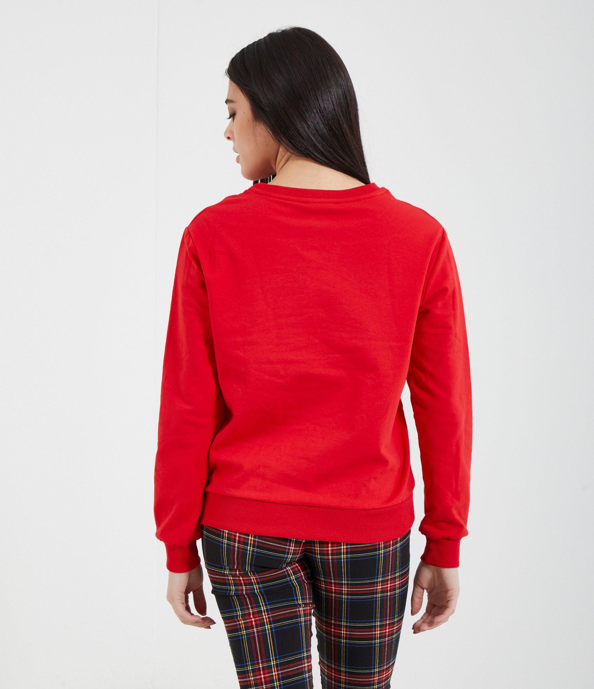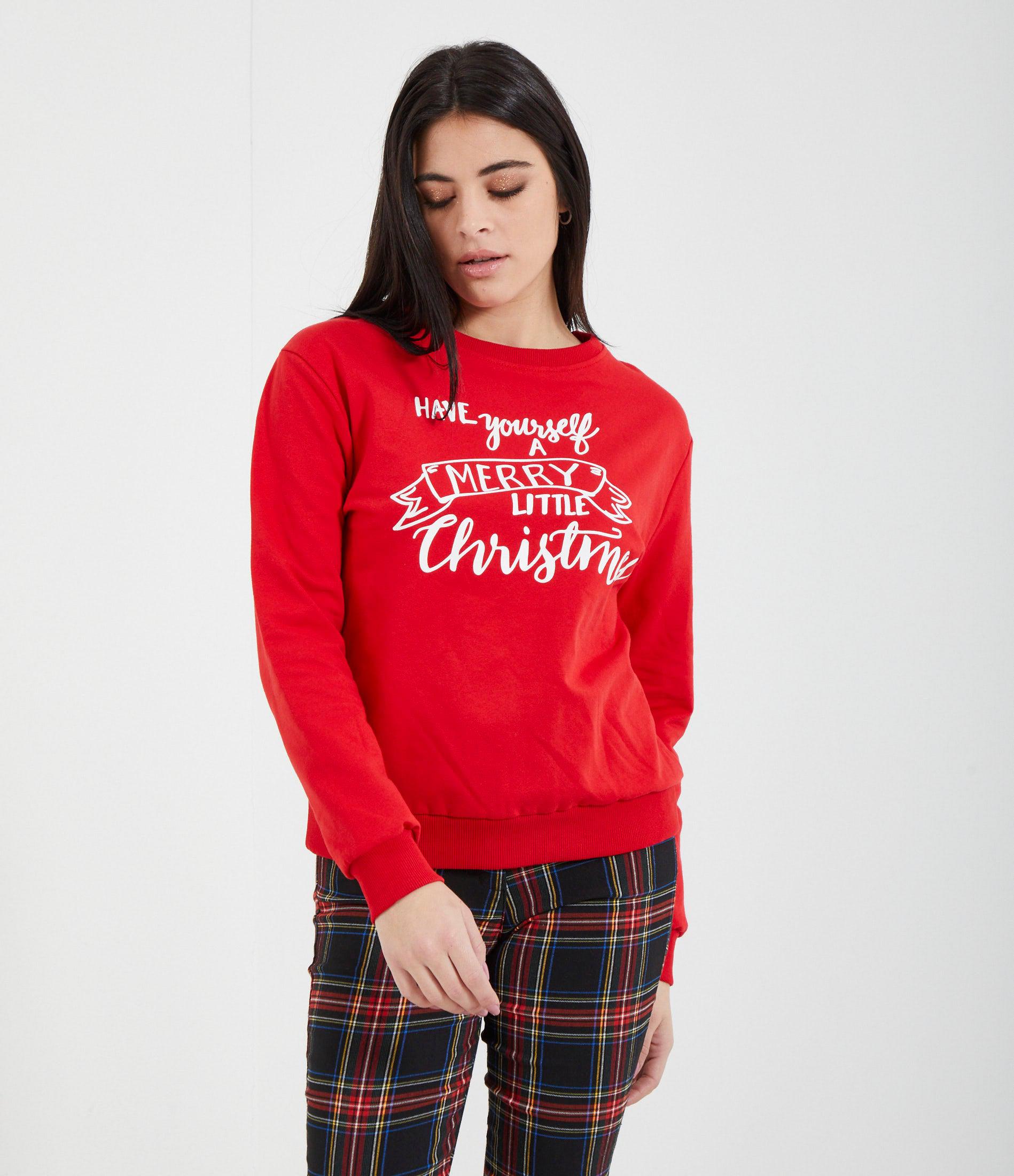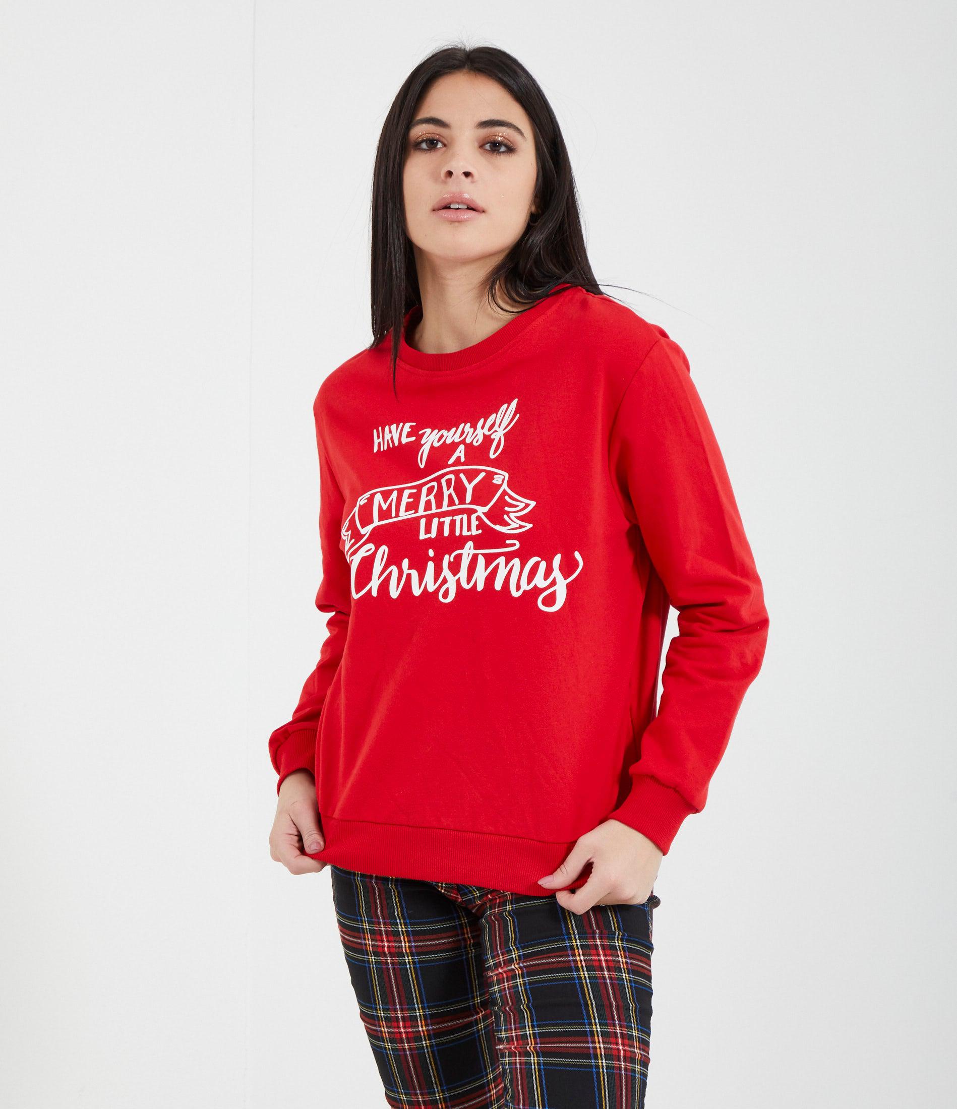 Felpa stampata con grafica natalizia. Giro collo e bordi elastici a costine.