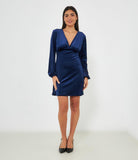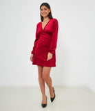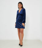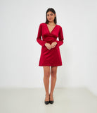 Abito mini in ciniglia con scollo a V profondo e chiusura con lacci sul retro.