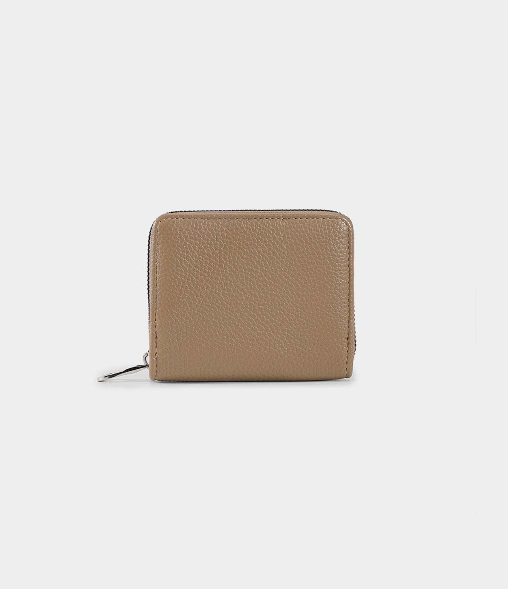 Portafogli quadrato con scomparti interni e chiusura con zip.