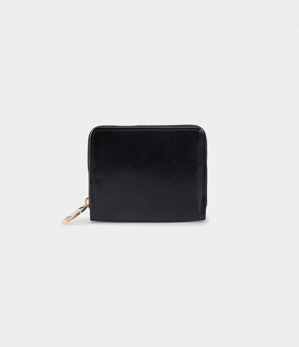 Portafogli effetto pelle, modello quadrato con scomparti interni e chiusura con zip.