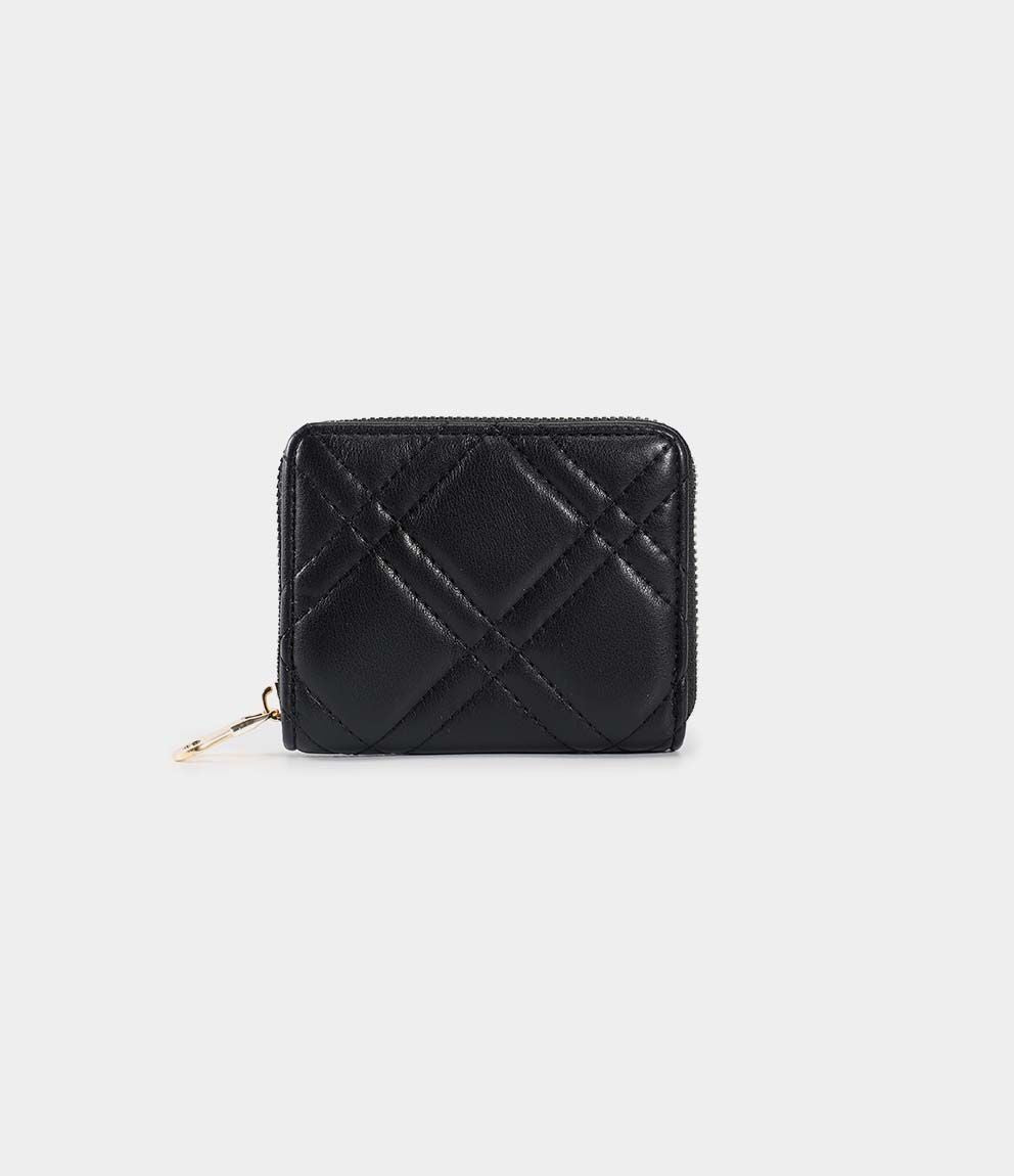Portafogli quadrato con scomparti interni e chiusura con zip.