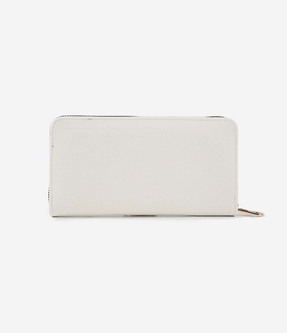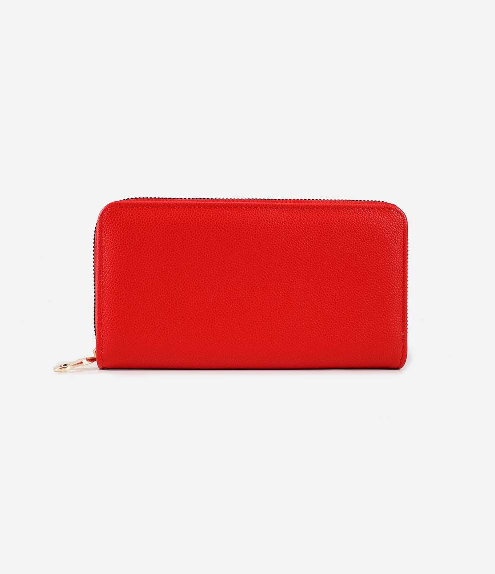 Portafogli rettangolare con scomparti interni e chiusura con zip.