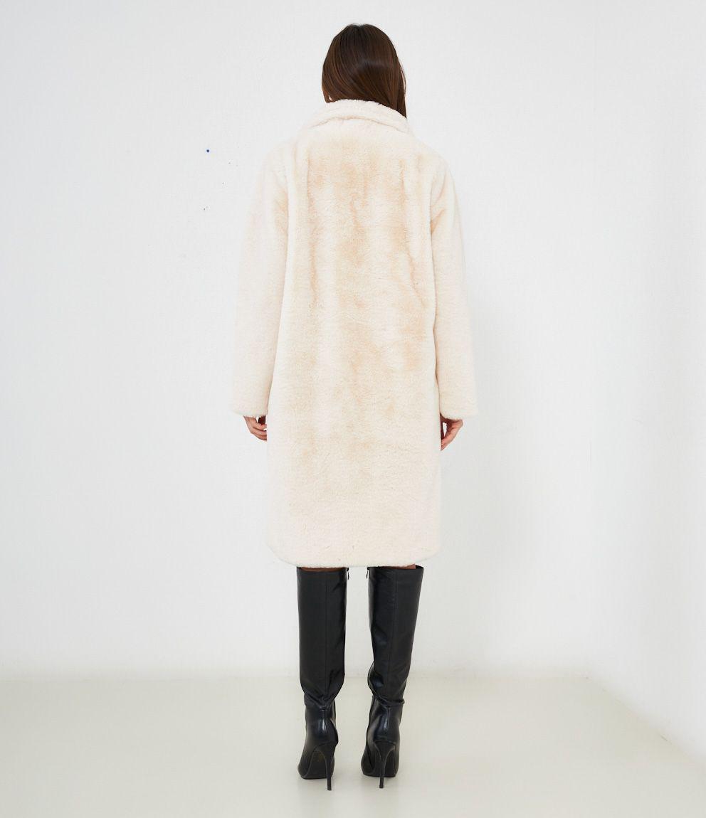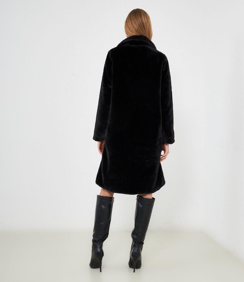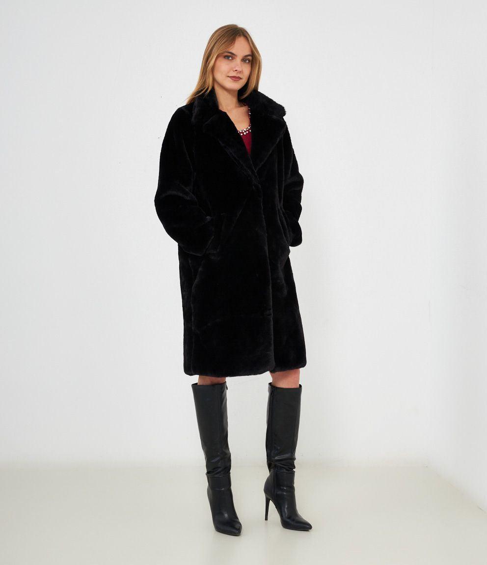 Pelliccia modello over con collo revers e chiusura con bottoni. Tasche laterali.