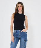 Canotta in viscosa, slim fit a girocollo, trama a trecce e bordi a costine.
