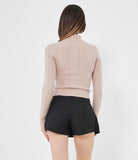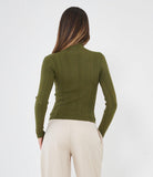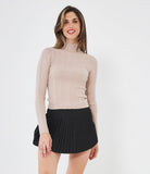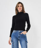 Maglia con collo a vulcano, modello a costine in viscosa.