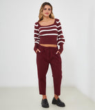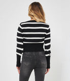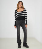 Maglia a righe con scollo quadrato, bordi alti a costine.