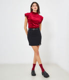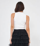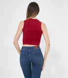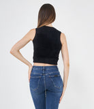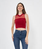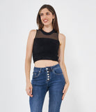 Canotta effetto peluche, modello crop a costine con parte alta in microrete.