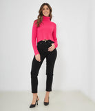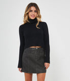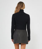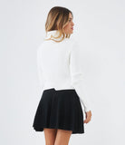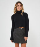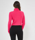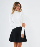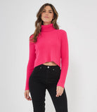 Maglia modello crop a costine con collo alto.