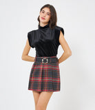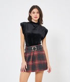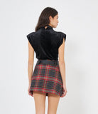 Maglia in ciniglia con spalline imbottite, collo alto e giro maniche ampio. chiusura sul retro con bottone.