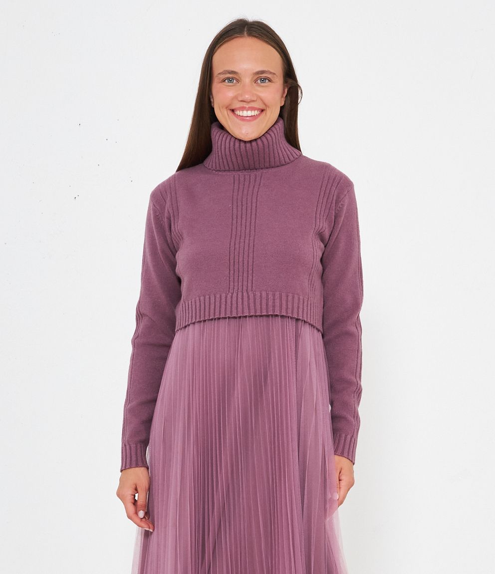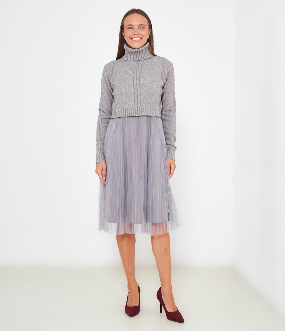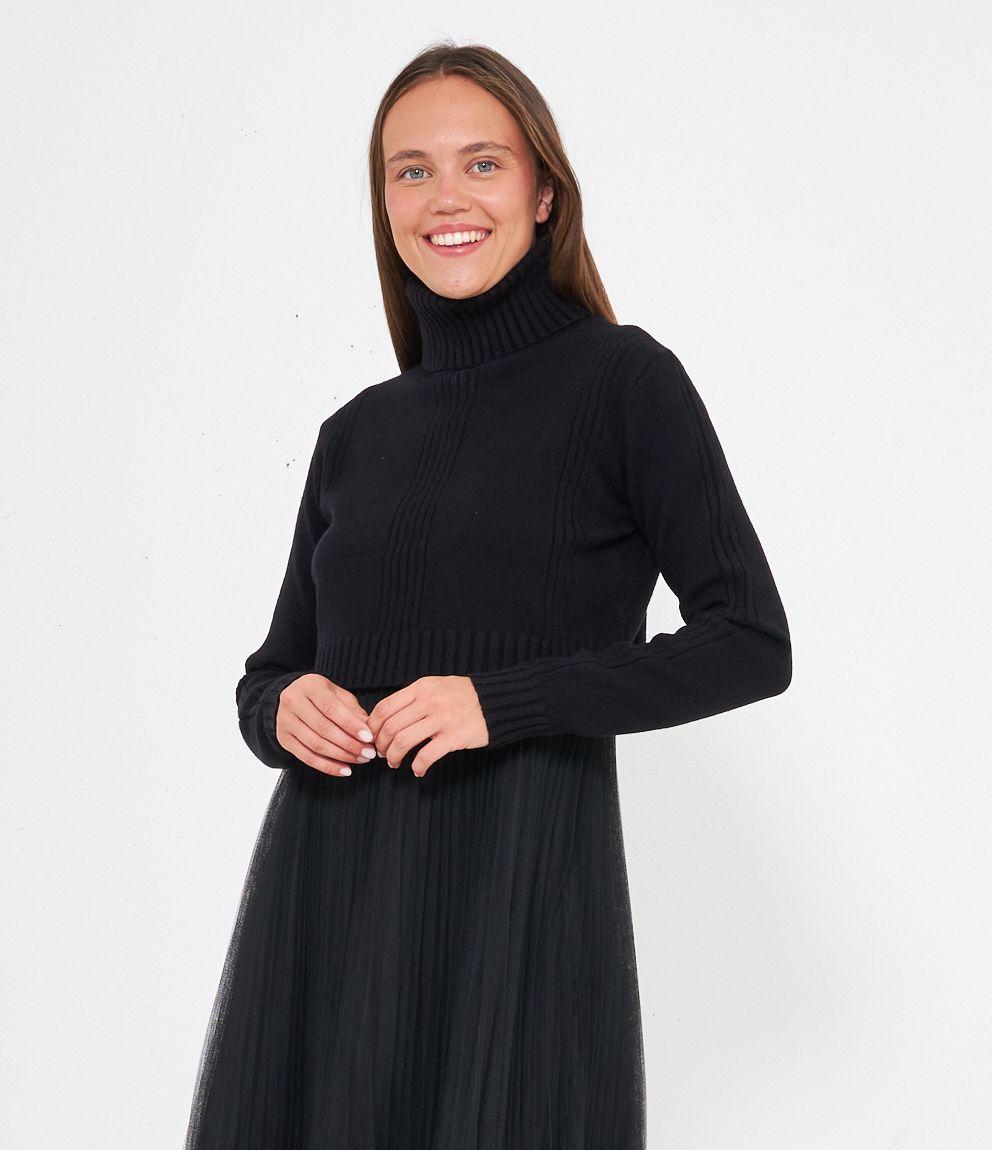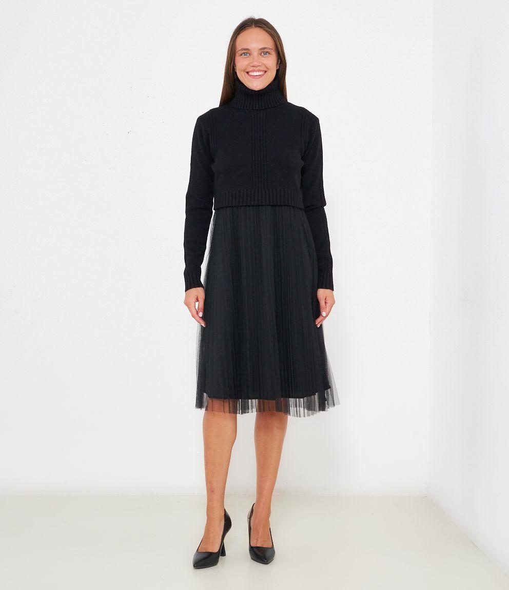 Abito a giro maniche con gonna in tulle, maglia a collo alto con risvolto. (I due articoli sono a completo e vengono venduti insieme).