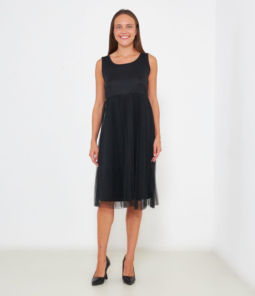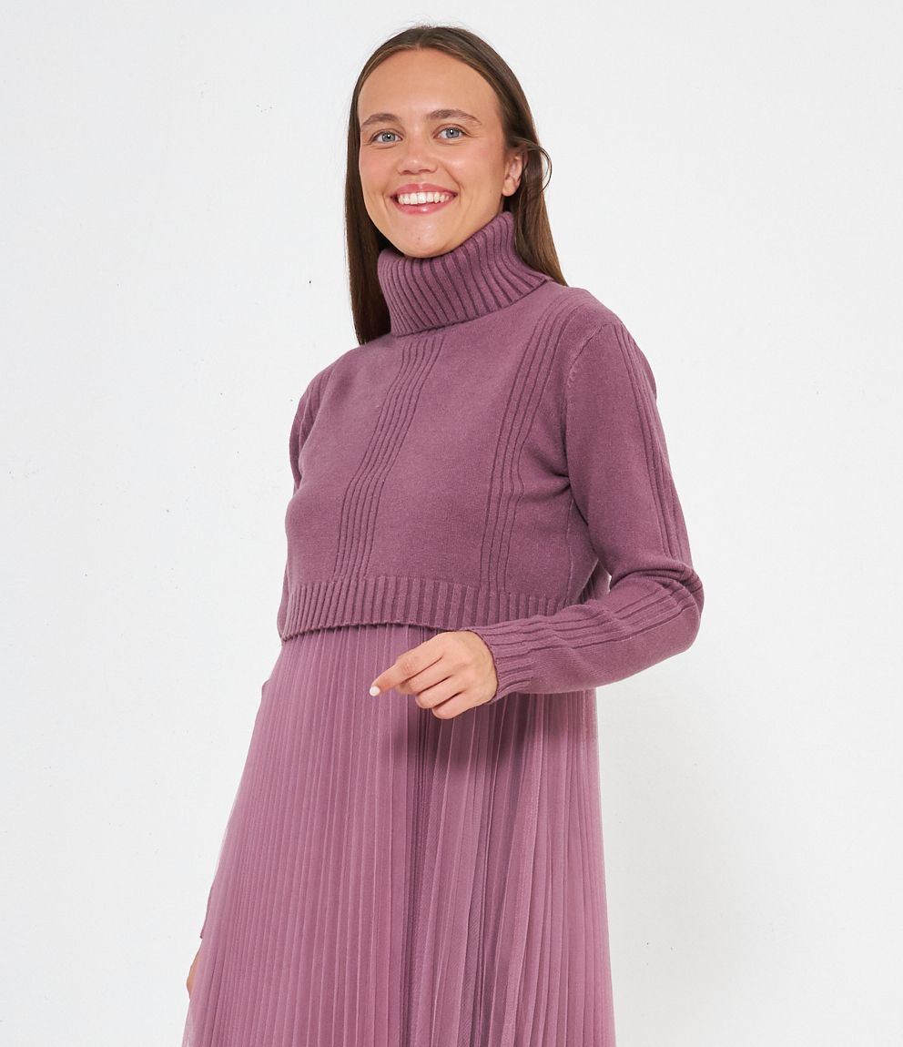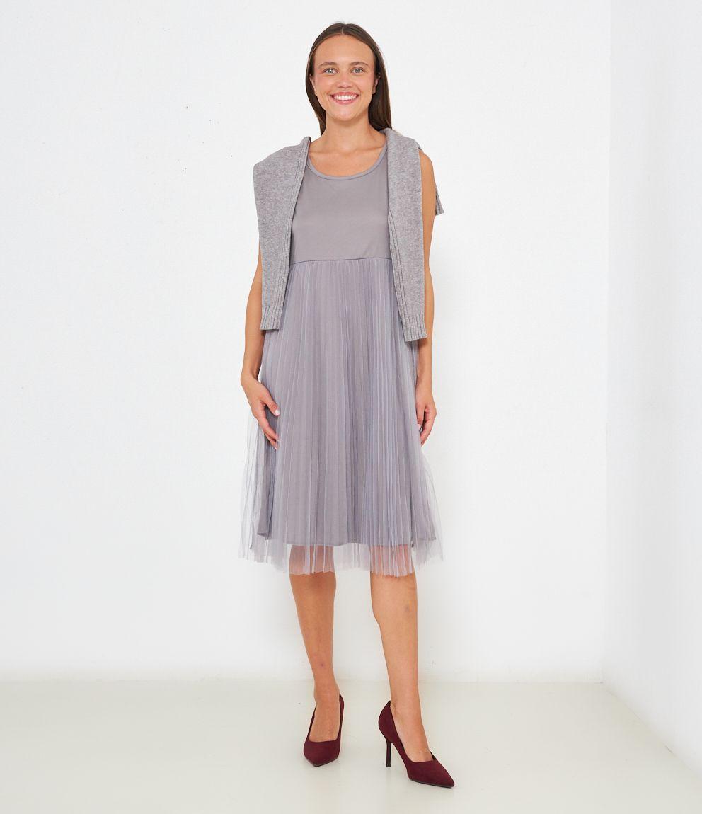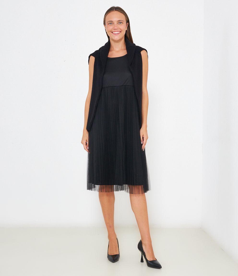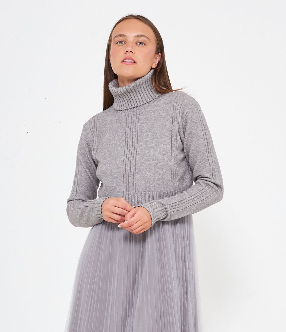 Abito a giro maniche con gonna in tulle, maglia a collo alto con risvolto. (I due articoli sono a completo e vengono venduti insieme).