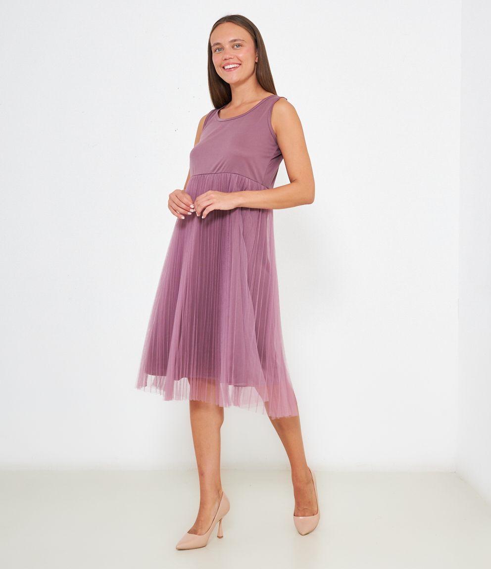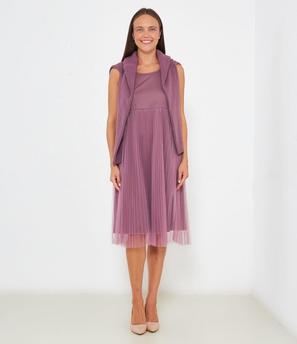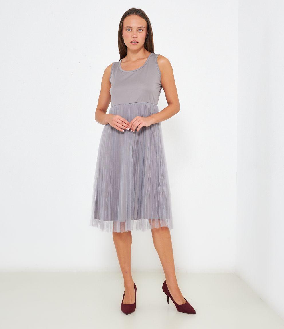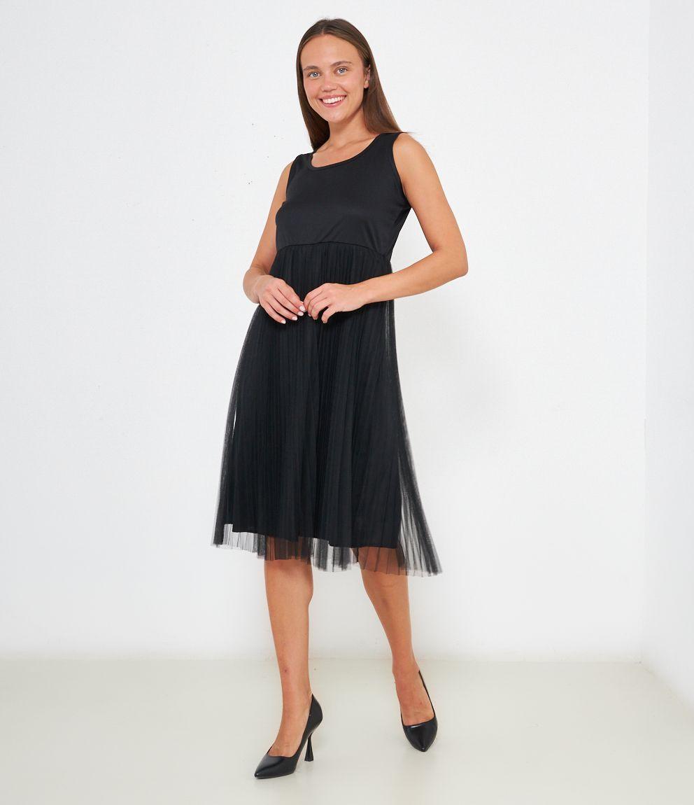 Abito a giro maniche con gonna in tulle, maglia a collo alto con risvolto. (I due articoli sono a completo e vengono venduti insieme).