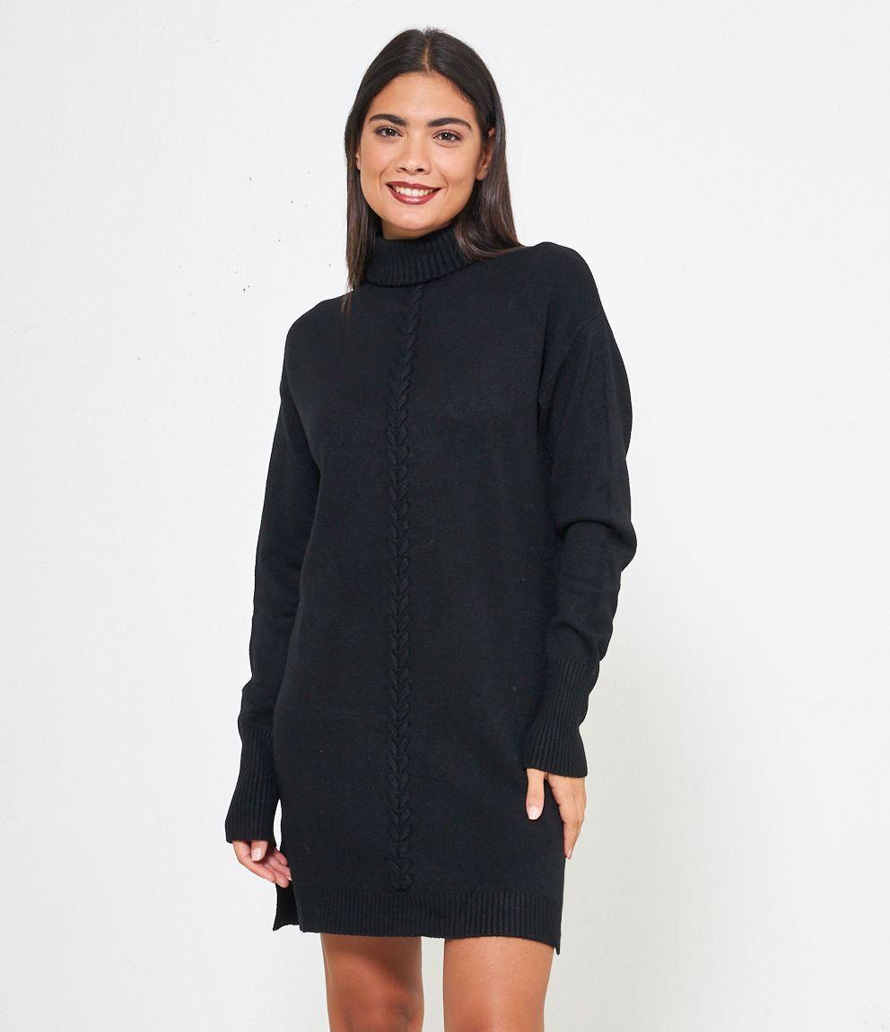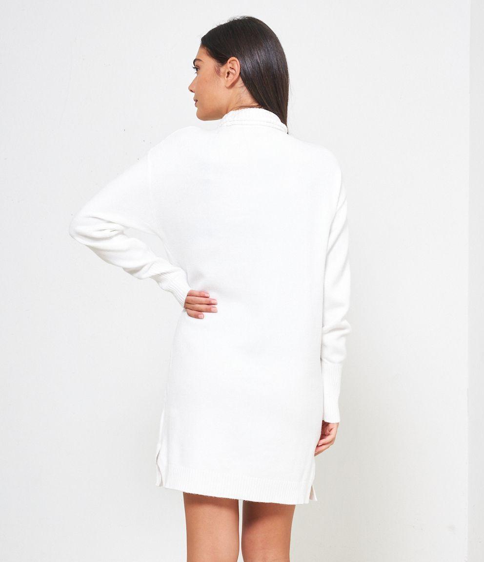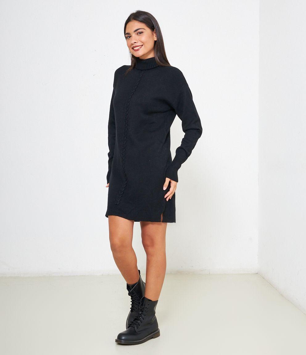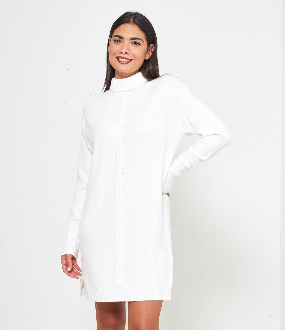 Abito in maglia modello mini, trama a rilievo frontale e bordi a costine.